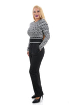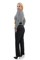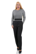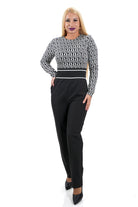 Дамски гащеризон спортно-елегантен с прав панталон в черно,черно и бяло в горна част и ластичен колан на талията 7091