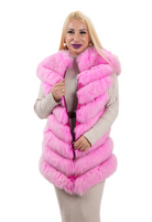 Дамски елек дълъг от естествен косъм от лисица на редове в розово 013 Pink
