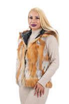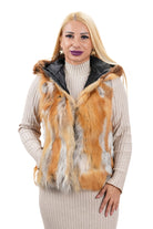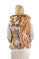 Дамски елек къс от естествен косъм от златна лисица с качулка