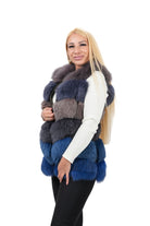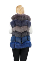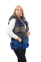 Дамски елек дълъг от естествен косъм на редове в бежово синьо и зелено