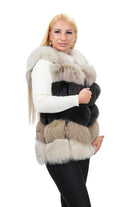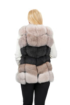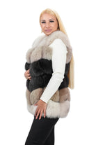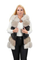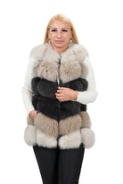 Дамски елек дълъг от естествен косъм на редове в бежово и кафяво
