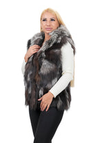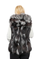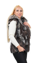 Дамски елек от естествен косъм от лисица с качулка в сребърно Kapson