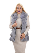 Дамски елек дълъг от естествен косъм на редове в сиво-син цвят