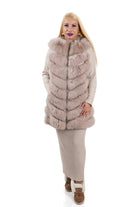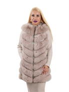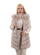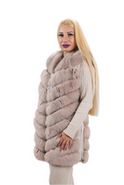 Дамски елек дълъг от естествен косъм на редове в цвят пудра розово 07 Pudra