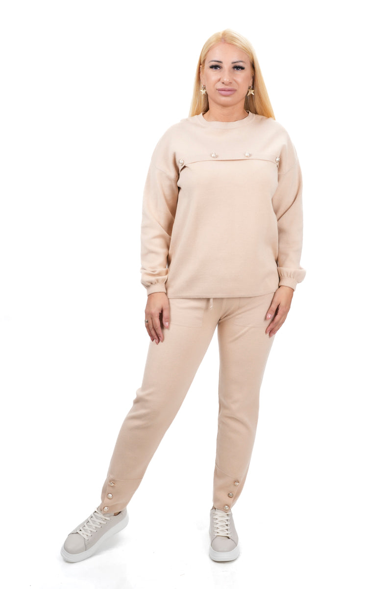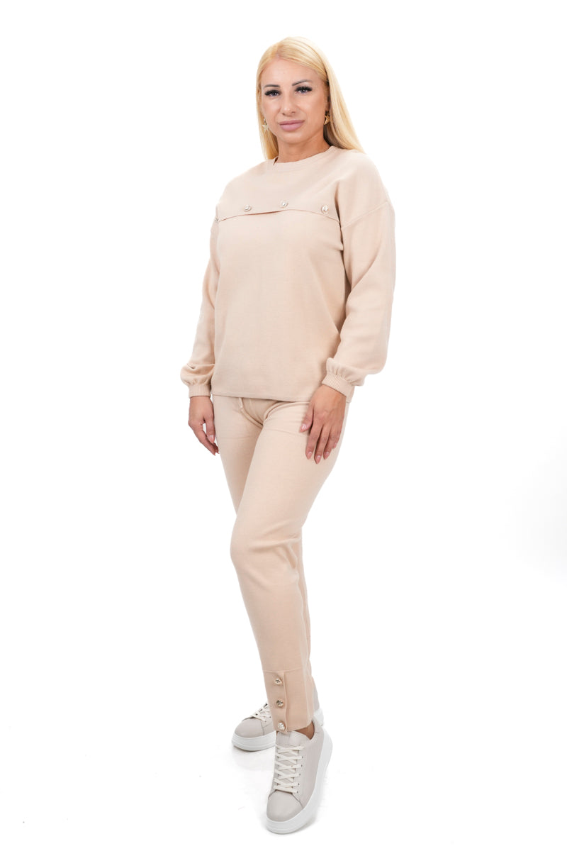 Дамски комплект ежедневен от 2 части от фино плетиво в бежово 9363