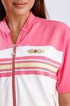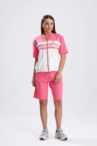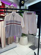 Дамски комплект от 2 части спортен с къс панталон и горна част с къс ръкав и цип в кремаво и сиво 37816-002