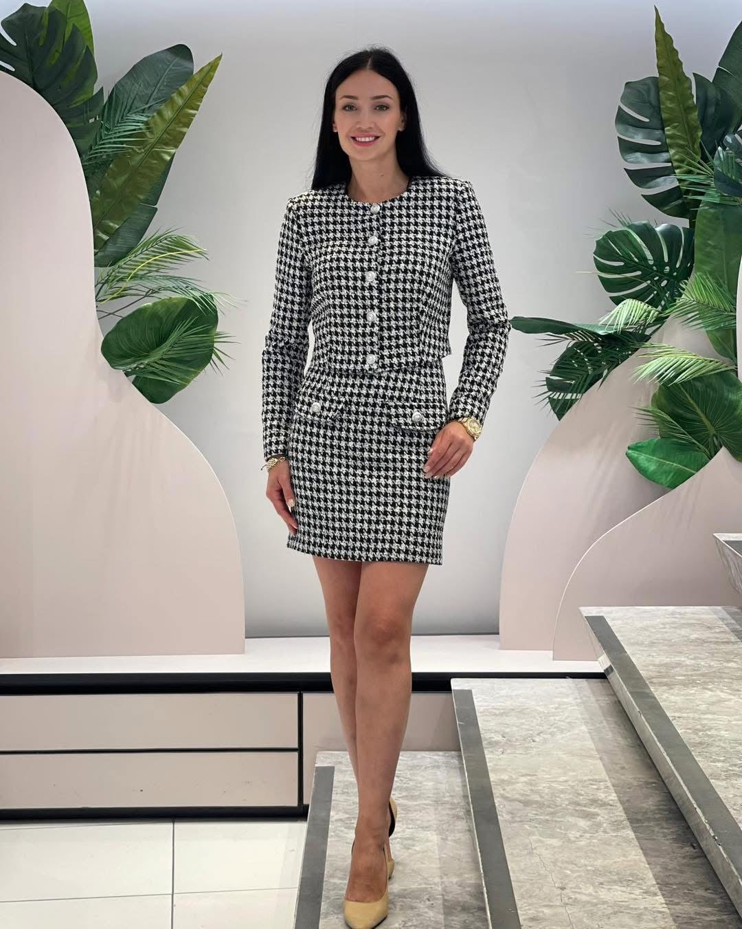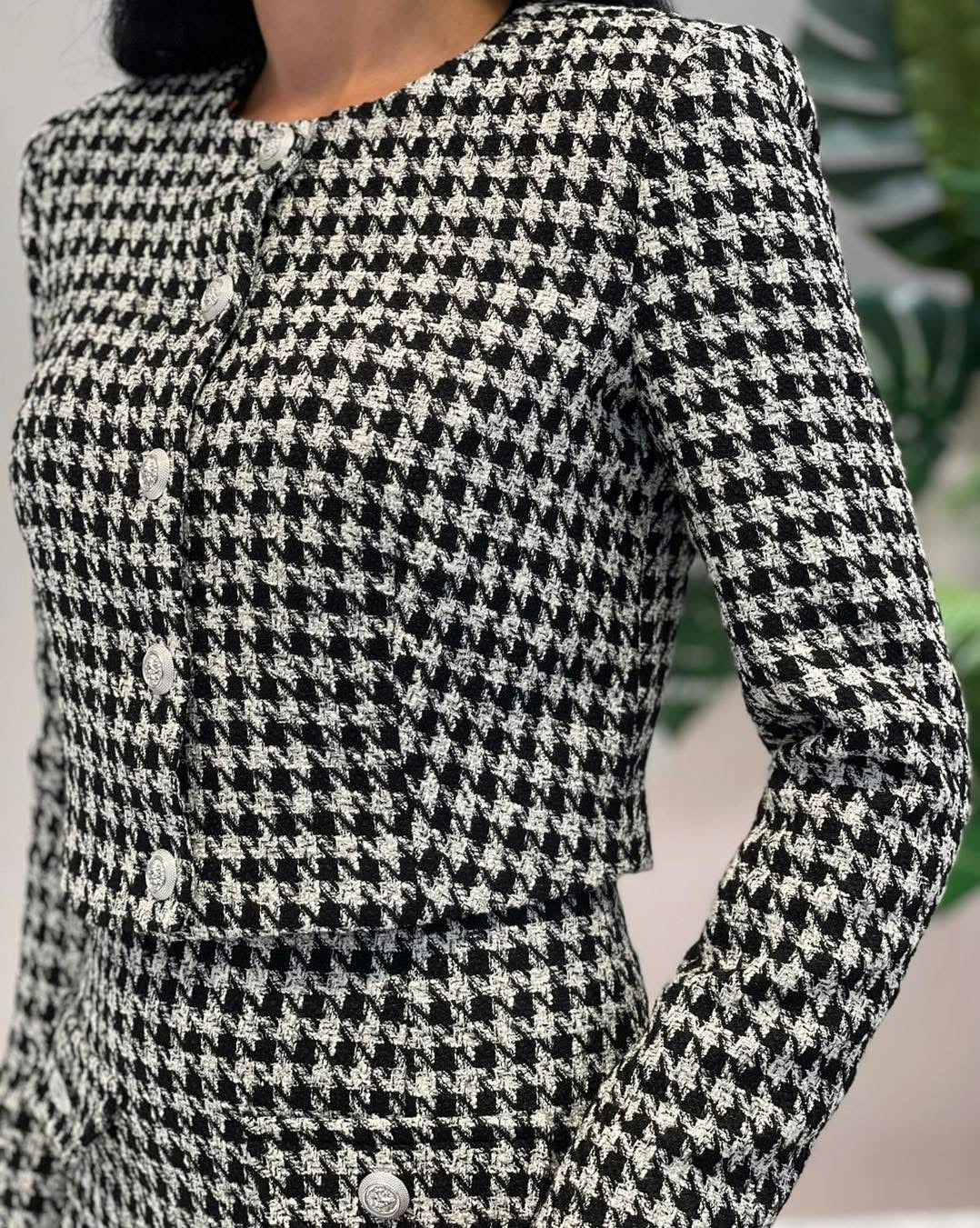 Дамски комплект от 2 части с късо сако и пола пепит 19265