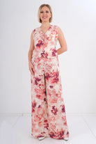 Дамски комплект от 2 части с широк панталон и елек в бежово-розов десен 2188