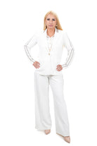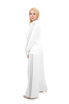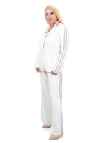 Дамски костюм от 2 части спортно-елегантен в екрю с бежов кант Сако и широк панталон  7397XL Големи номера