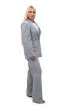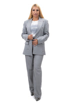 Дамски костюм от 3 части спортно-елегантен Сако и свободен панталон в сиво + тениска в бяло 7439 XL Големи номера Big Size