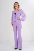 Дамски костюм в комплект от 2 части от сако с прозрачен ръкав и панталон в лилаво 20644