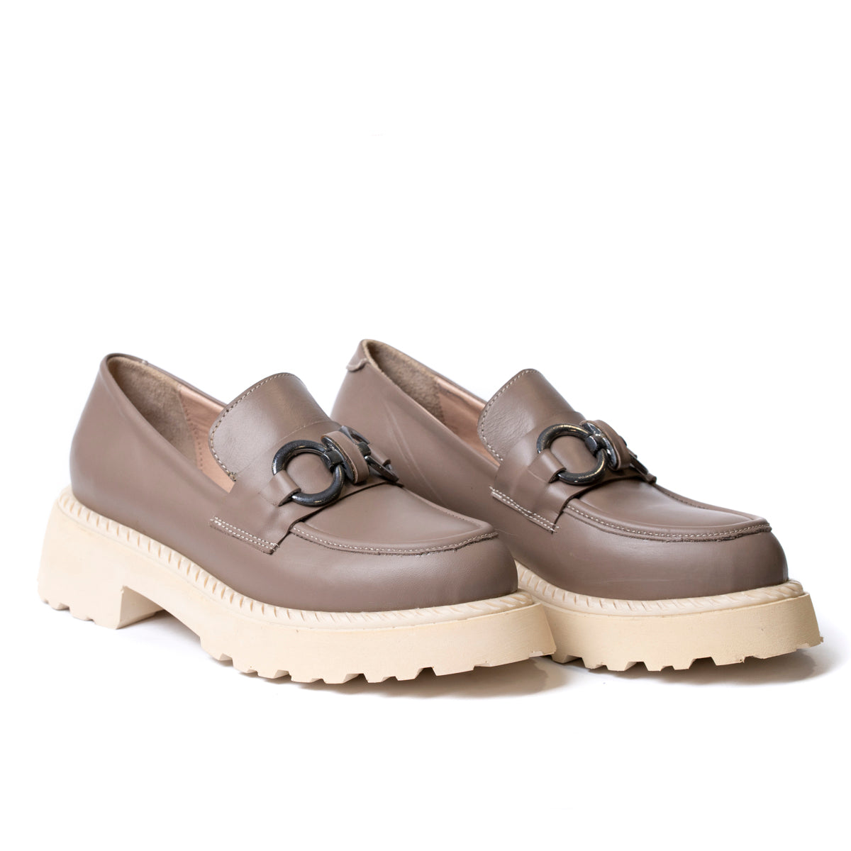 Дамски обувки лоуфър от естествена кожа в цвят визон 02-105-04