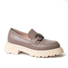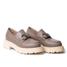 Обувки Лоуфър в цвят визон с кремава удебелена подметка.