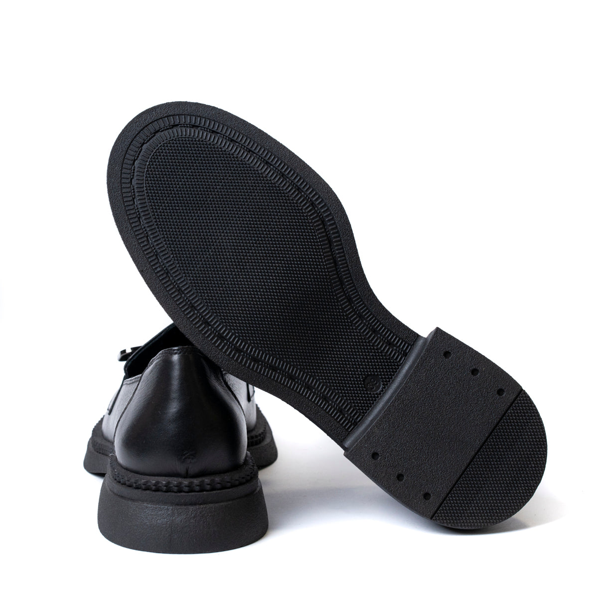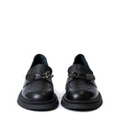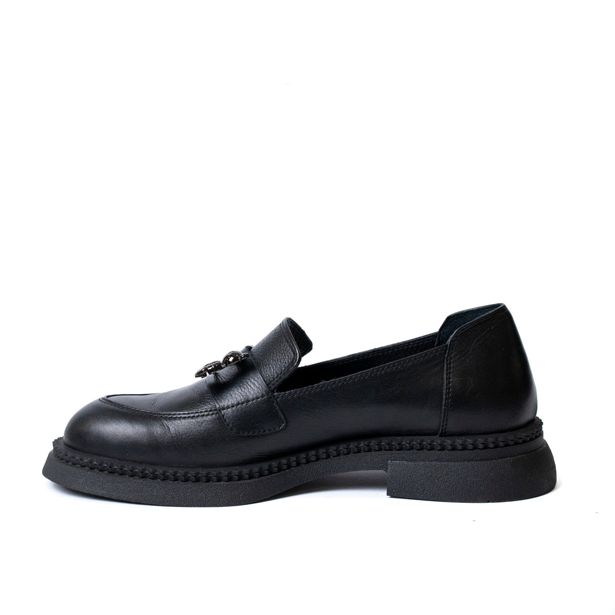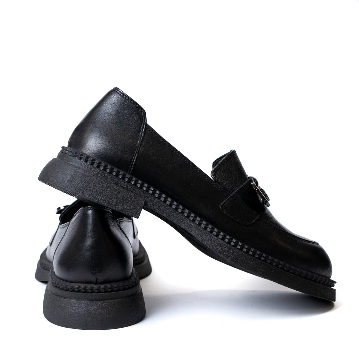 Дамски обувки лоуфър от естествена кожа с брошка с мече в черно 1504-01