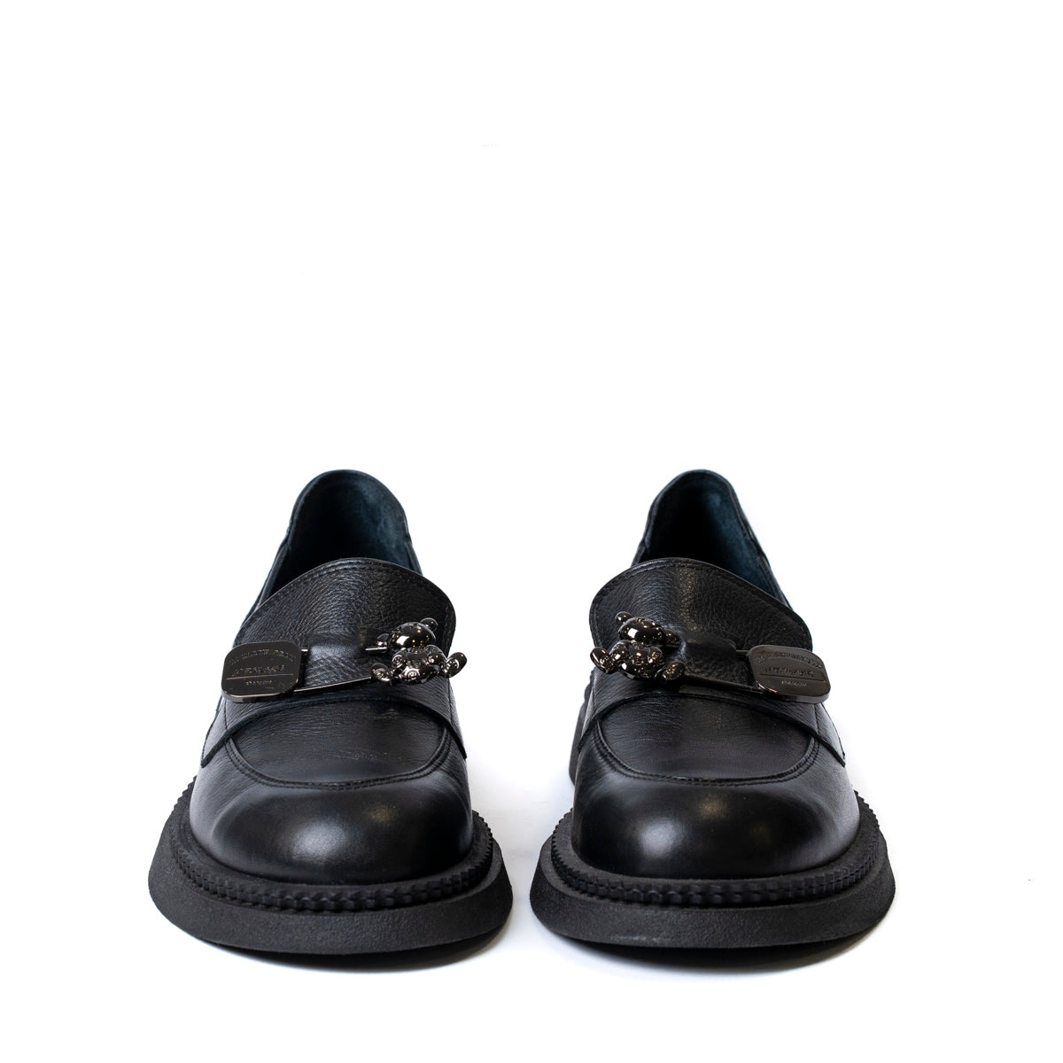 Обувки Лоуфър от естествена кожа с брошка с мече и ниска подметка.