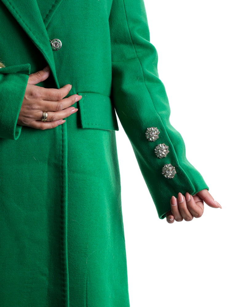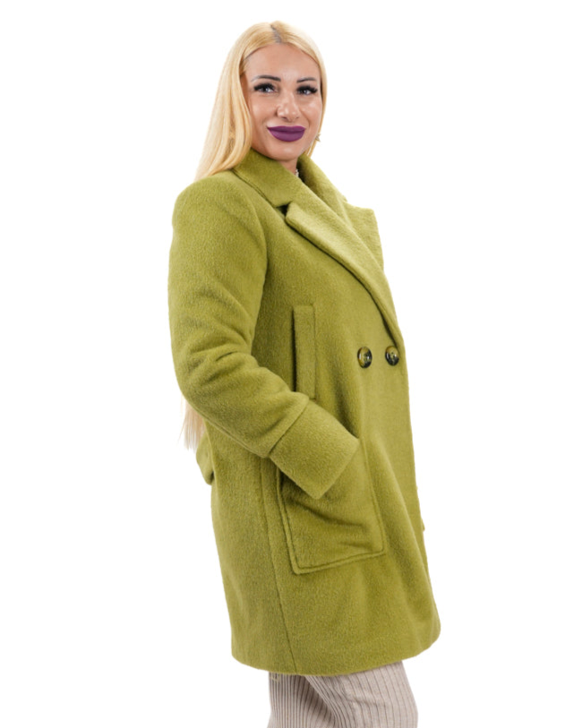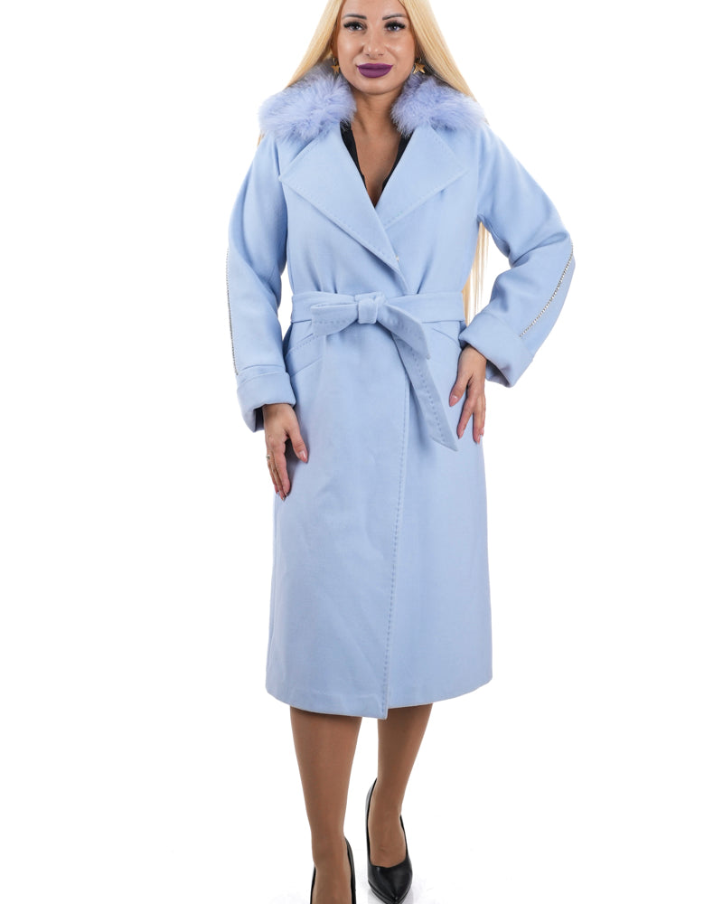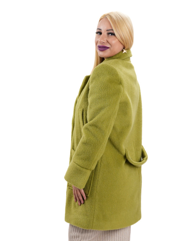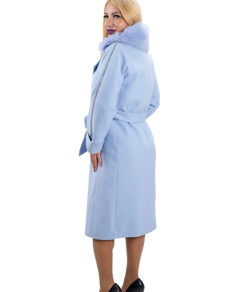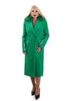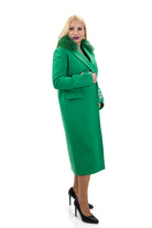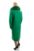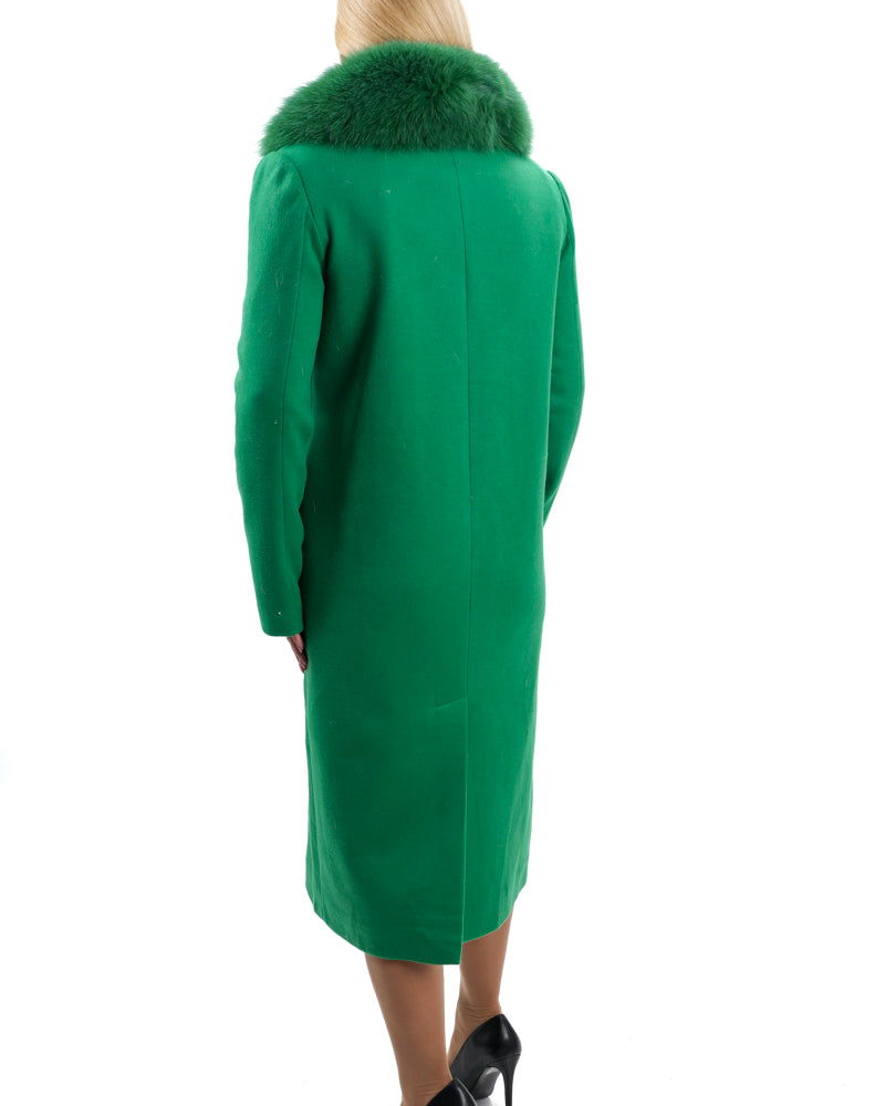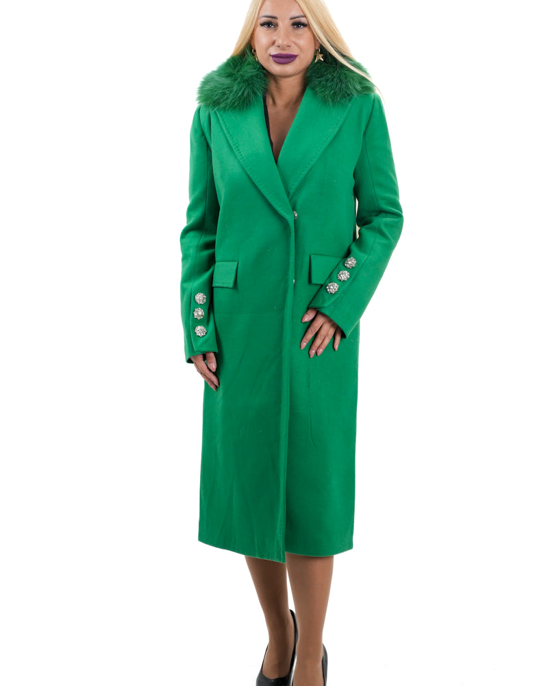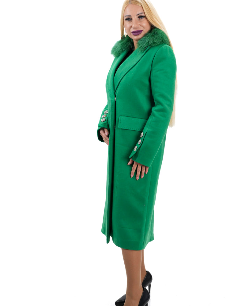 Дамско палто дълго в зелено с яка от естествен косъм 1019-1