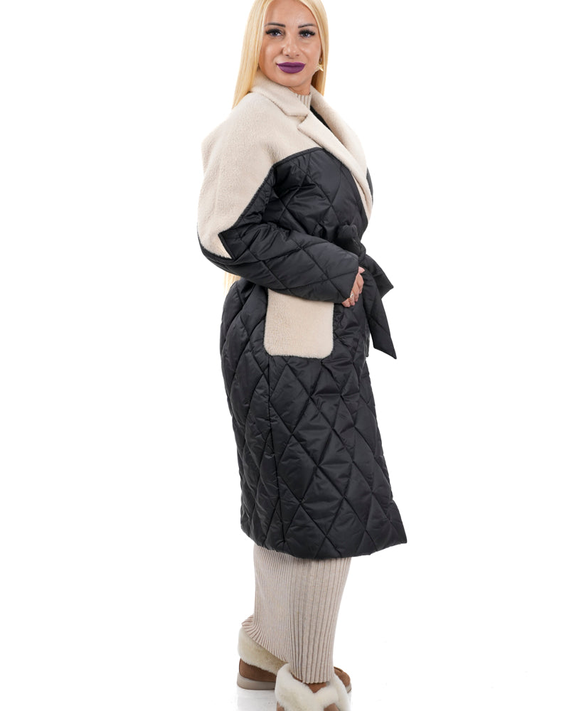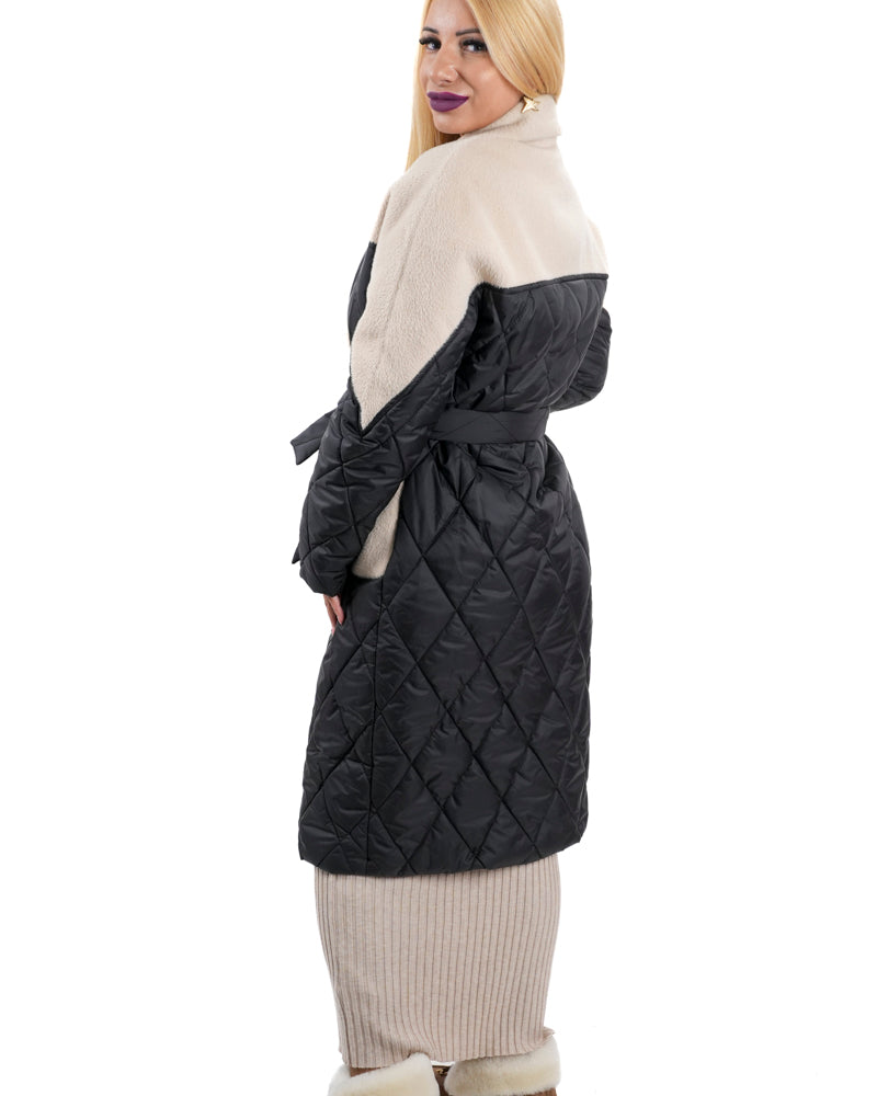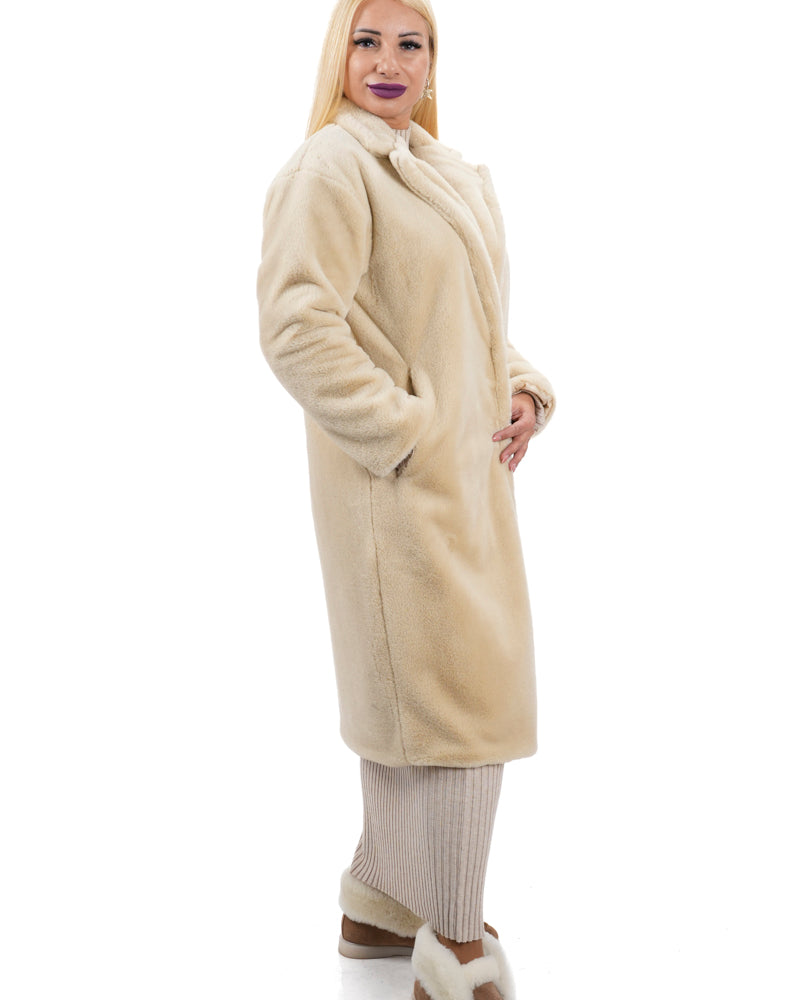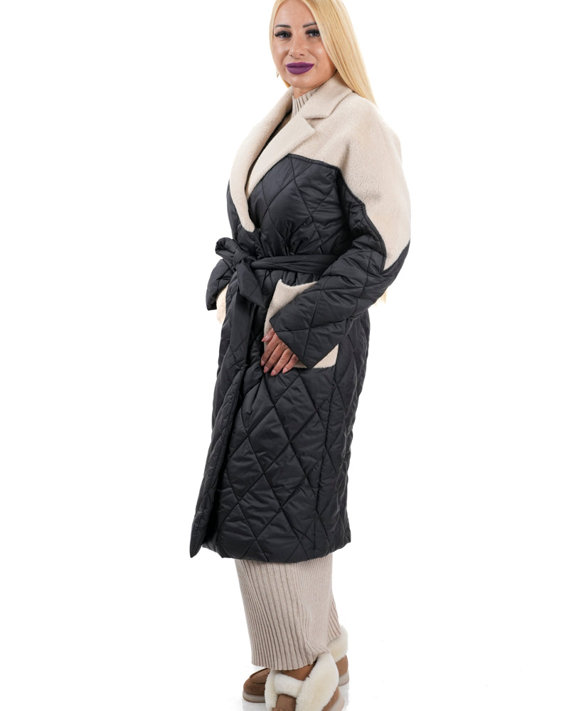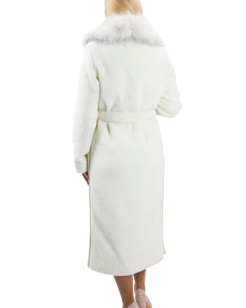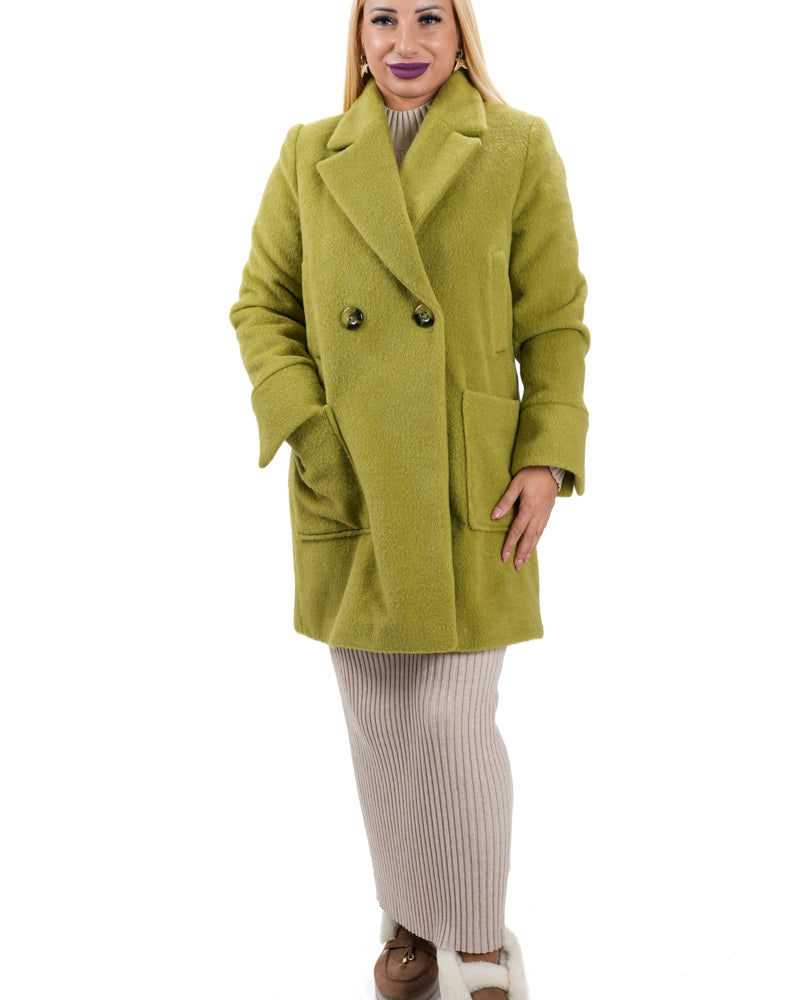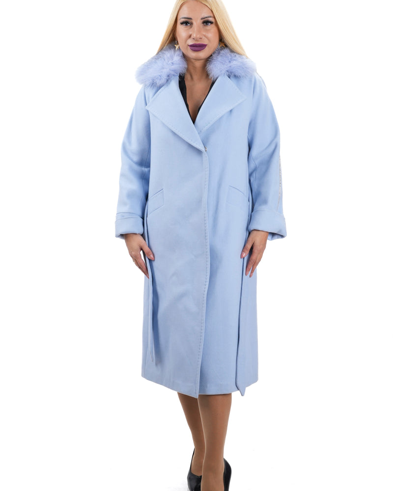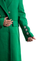 Дамско палто дълго в зелено с яка от естествен косъм 1019-1