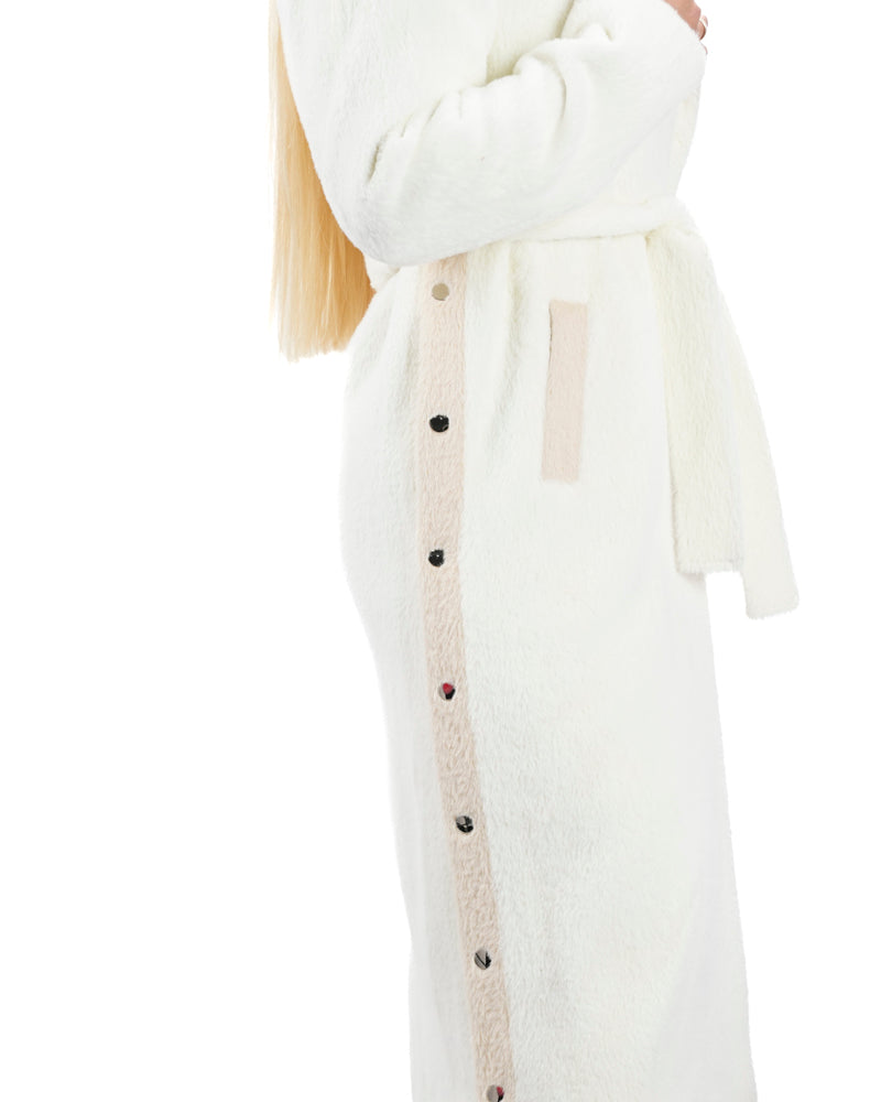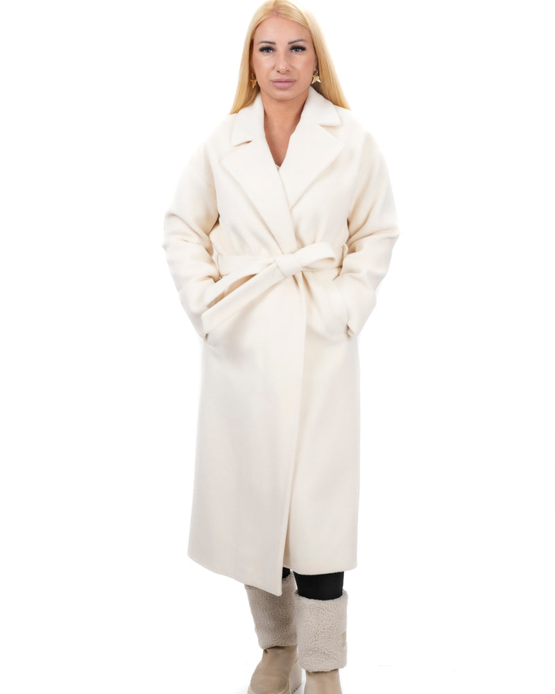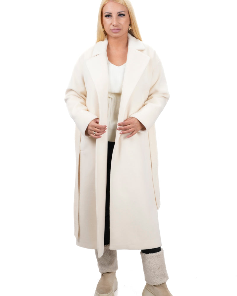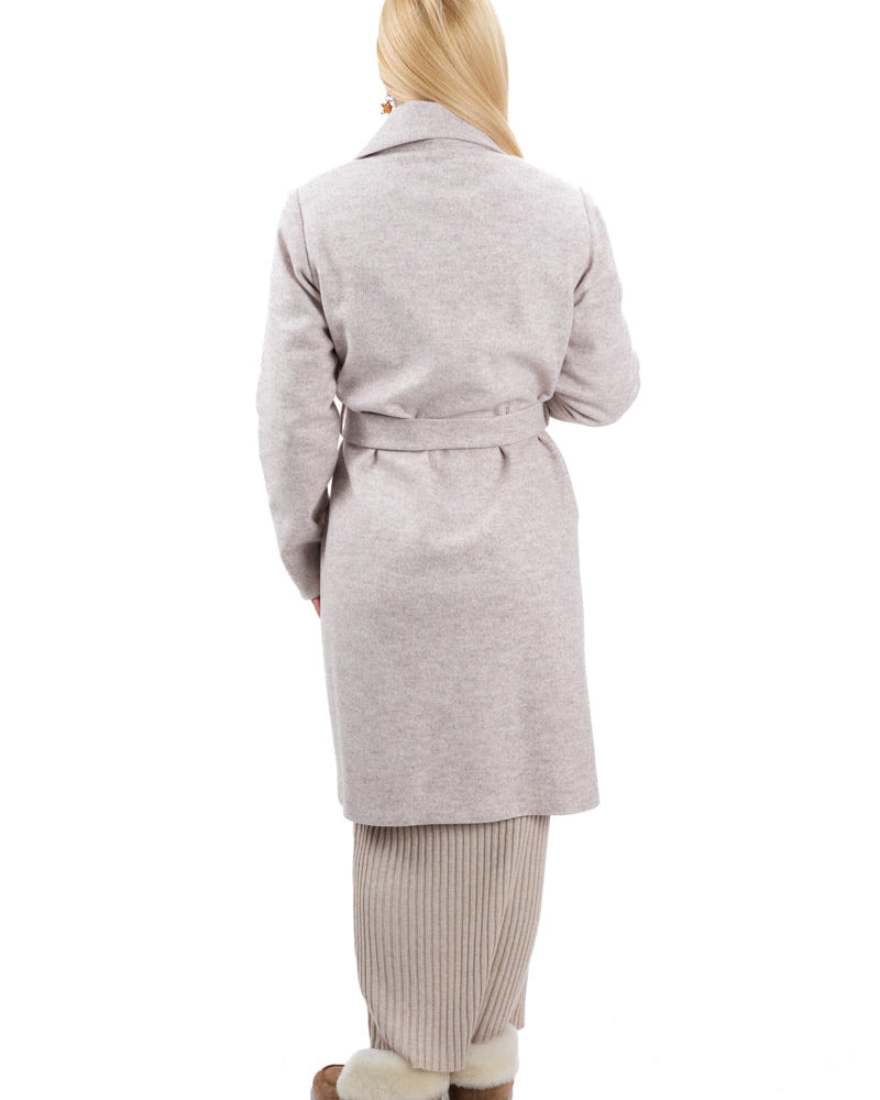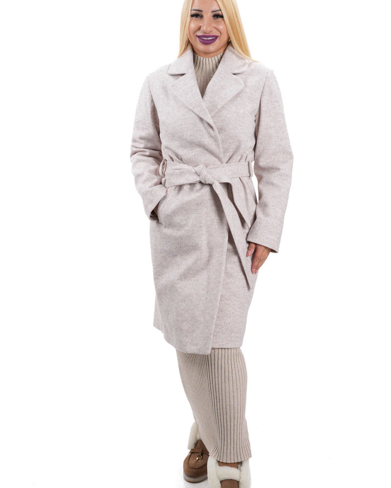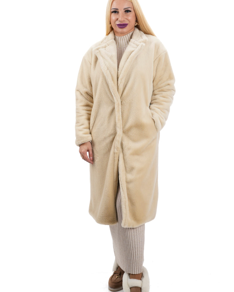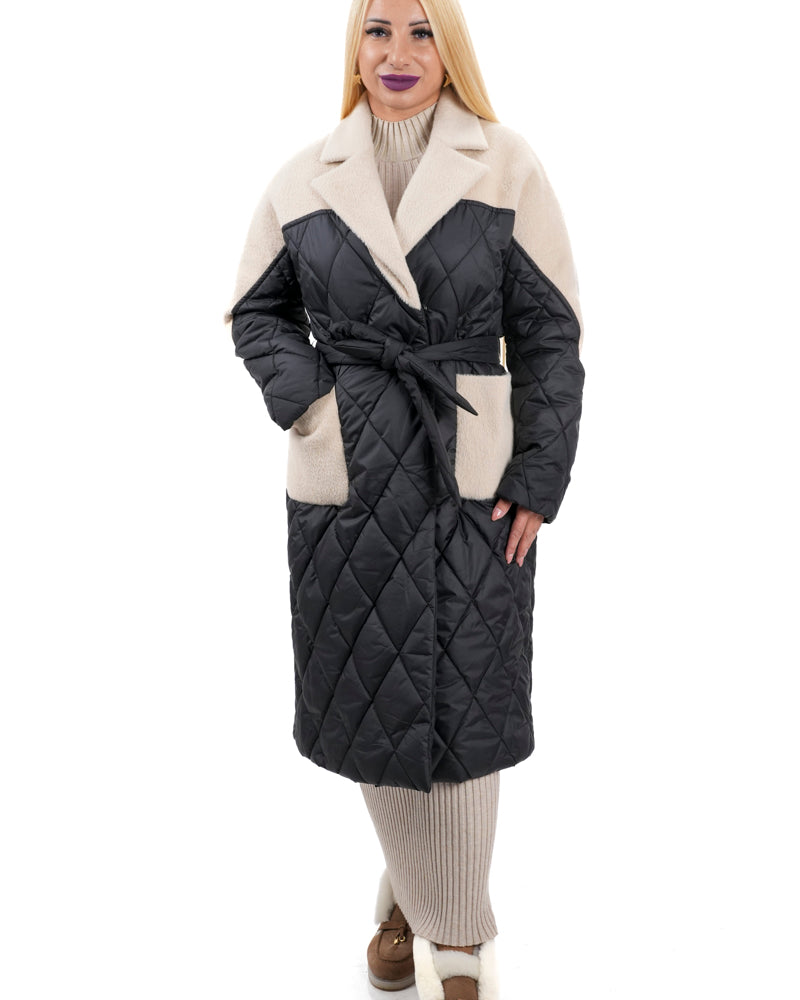 Дамско палто дълго в зелено с яка от естествен косъм 1019-1