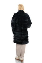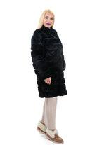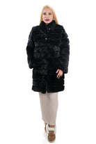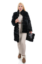 Дамско палто дълго от Чинчила в черно със сваляща се дължина с цип на палтото и на ръкава в черно