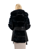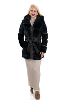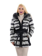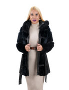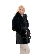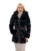 Дамско палто дълго от Чинчила с качулка 80 см в черно