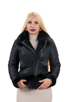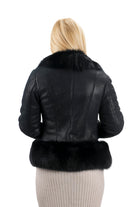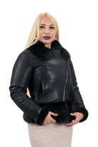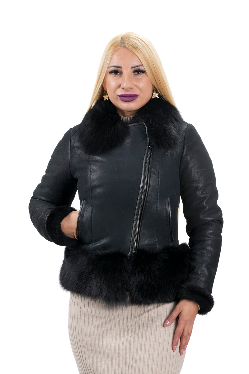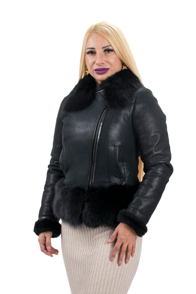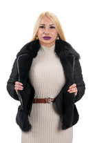 Дамско палто късо от естествена кожа с естествен хастар в черно
