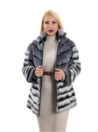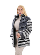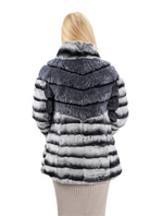Дамско палто дълго от естествен косъм от Чинчила с лазерен принт в черно-сив цвят