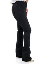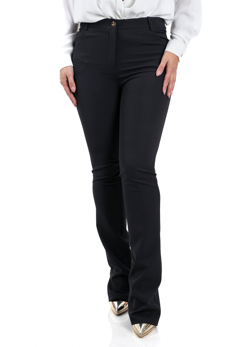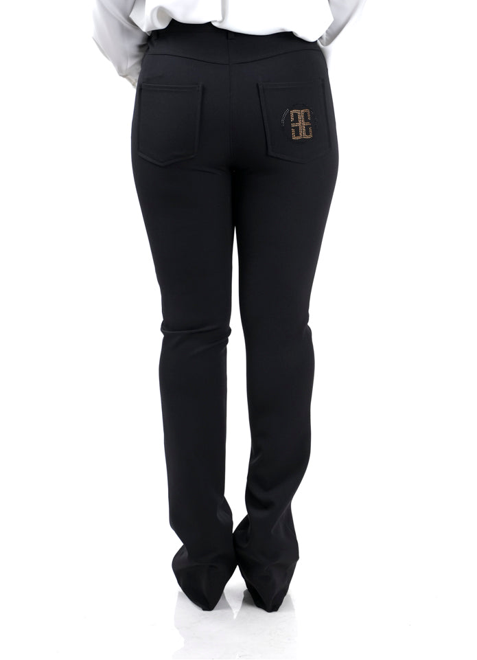 Дамски панталон тип чарлстон в черно с джобове отзад и щампа с камъчета 41274
