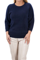 Дамски пуловер от фино плетиво с ангора и мохер в тъмно синьо 1806