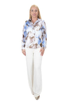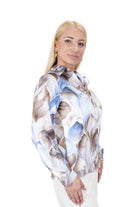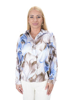 Дамска риза от сатен в нежни преливащи шарки в синьо и бежово 7606