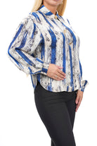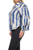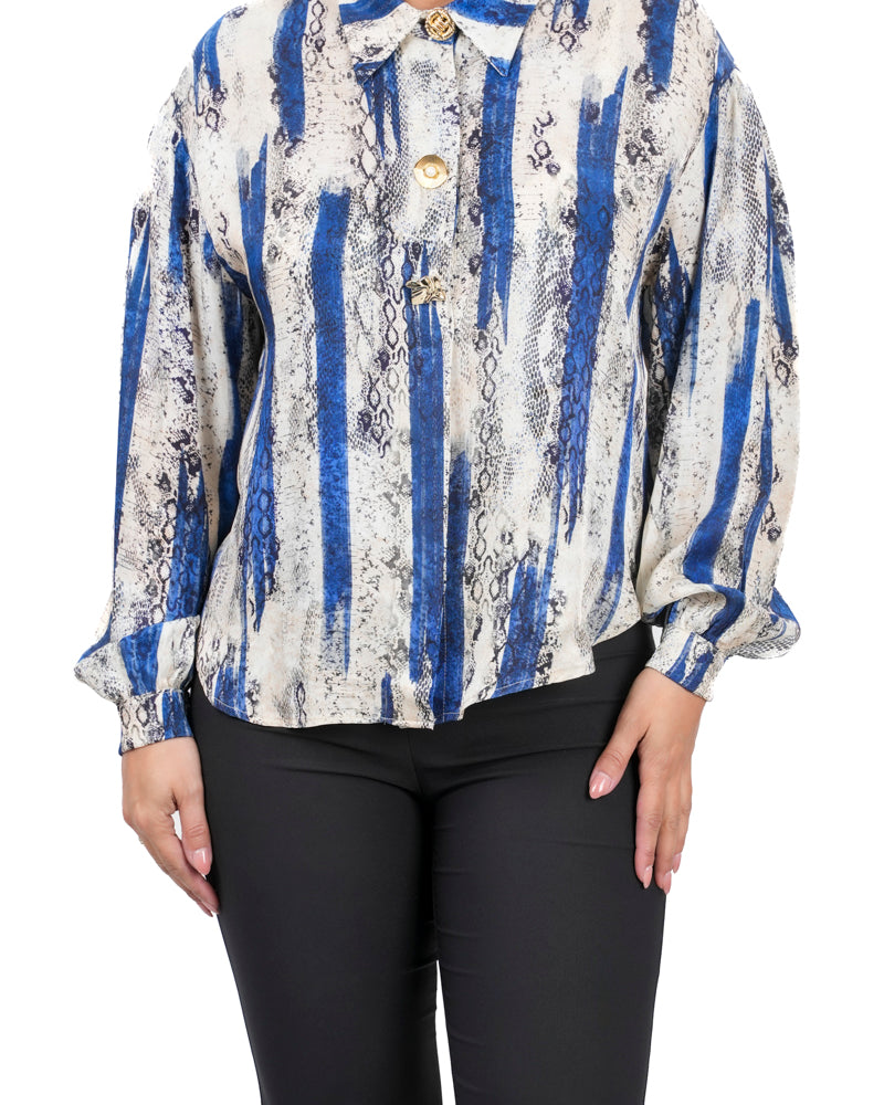Дамска риза от сатен в цветен десен големи номера 3477 XL Big Size