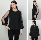 Дамска риза официална с прозрачен ръкав и лента със сребърни камъчета в черно 7132