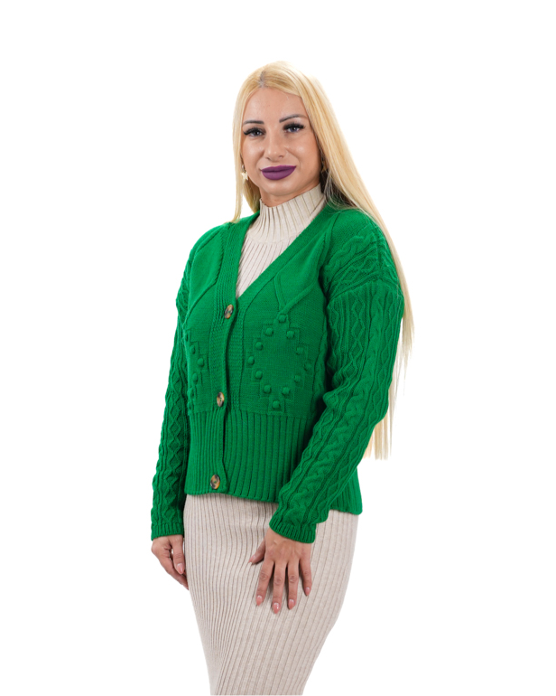 Дамска жилетка къса от плетиво в зелено ST-111
