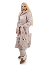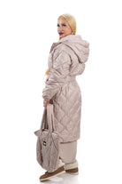 Дамско яке палто дълго с качулка в бежово от шушляк и ПОДАРЪК ДАМСКА ЧАНТА 6008