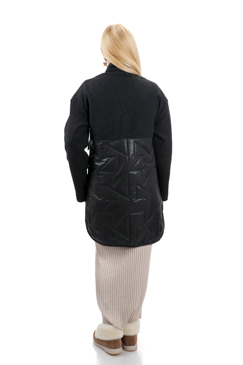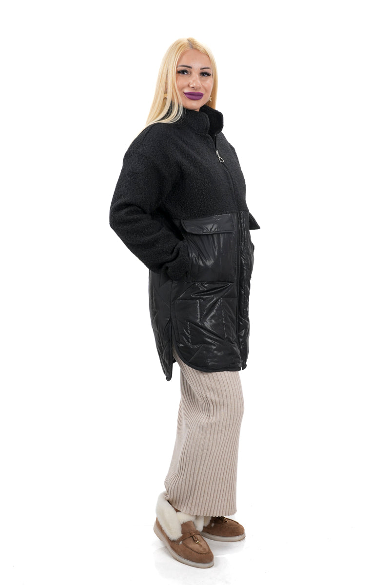 Дамско яке дълго пухено с шушляк и висока яка в черно 19959057
