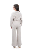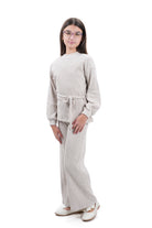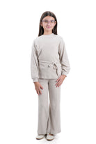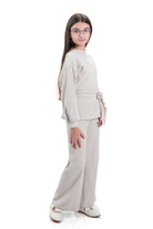Детски комплект за момиче от 2 части с широк панталон и блуза с перлички на ръкава и колан на талията в бежово 14018