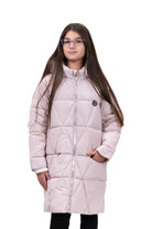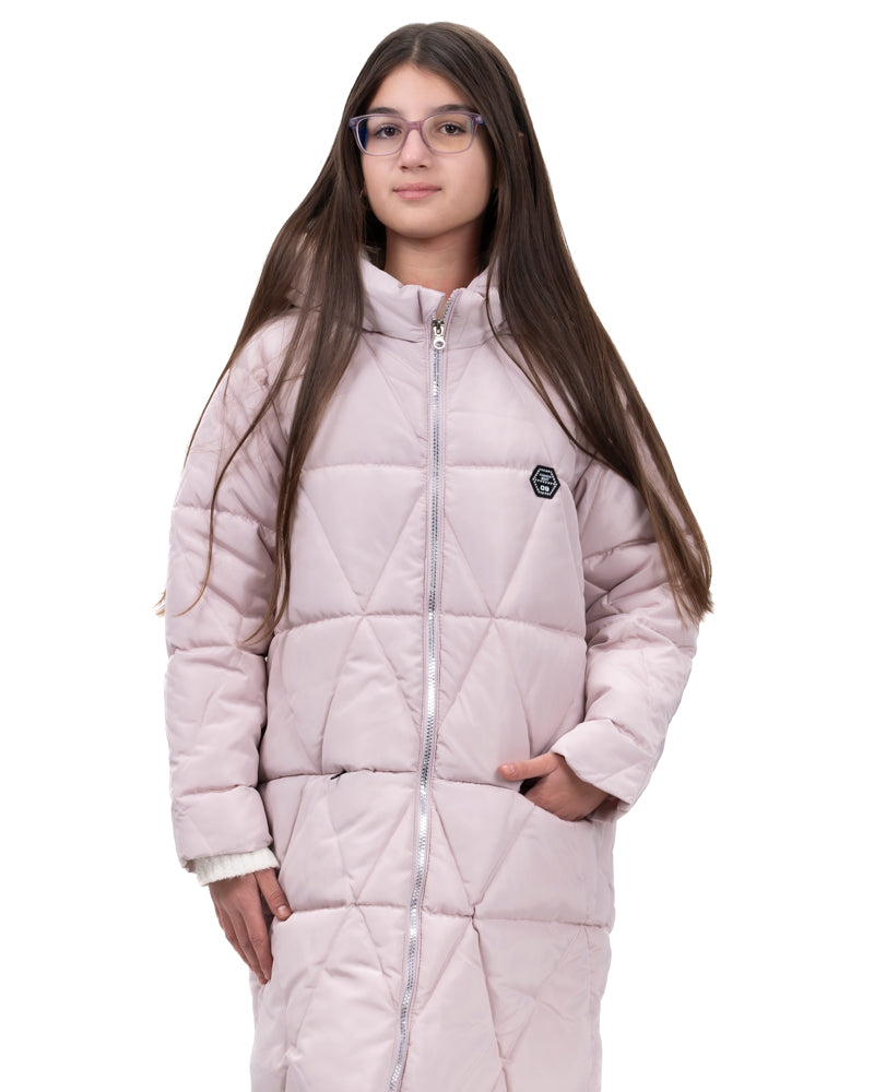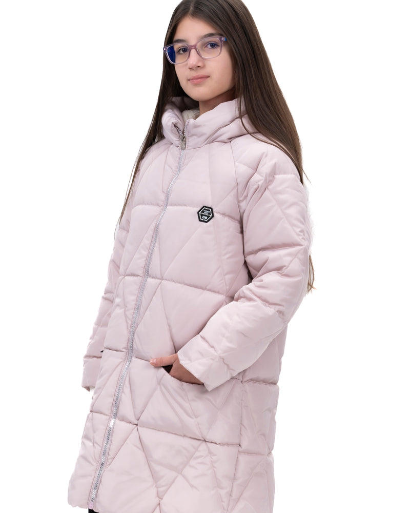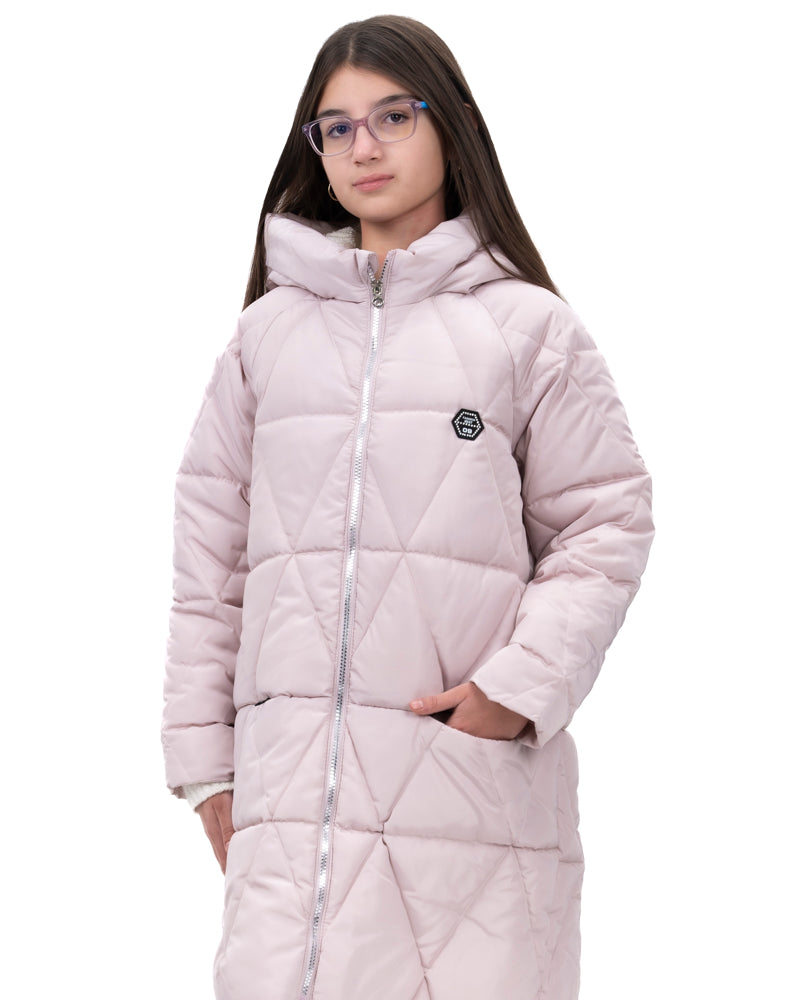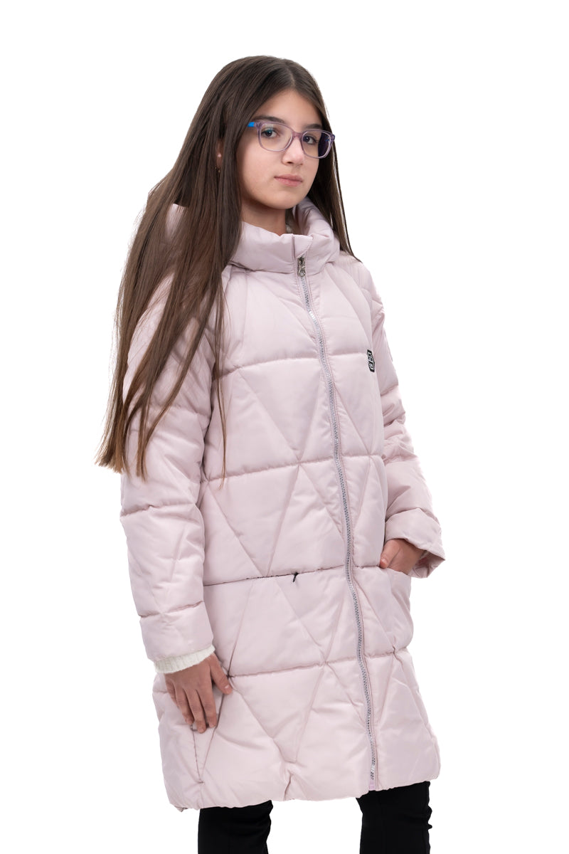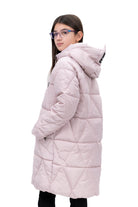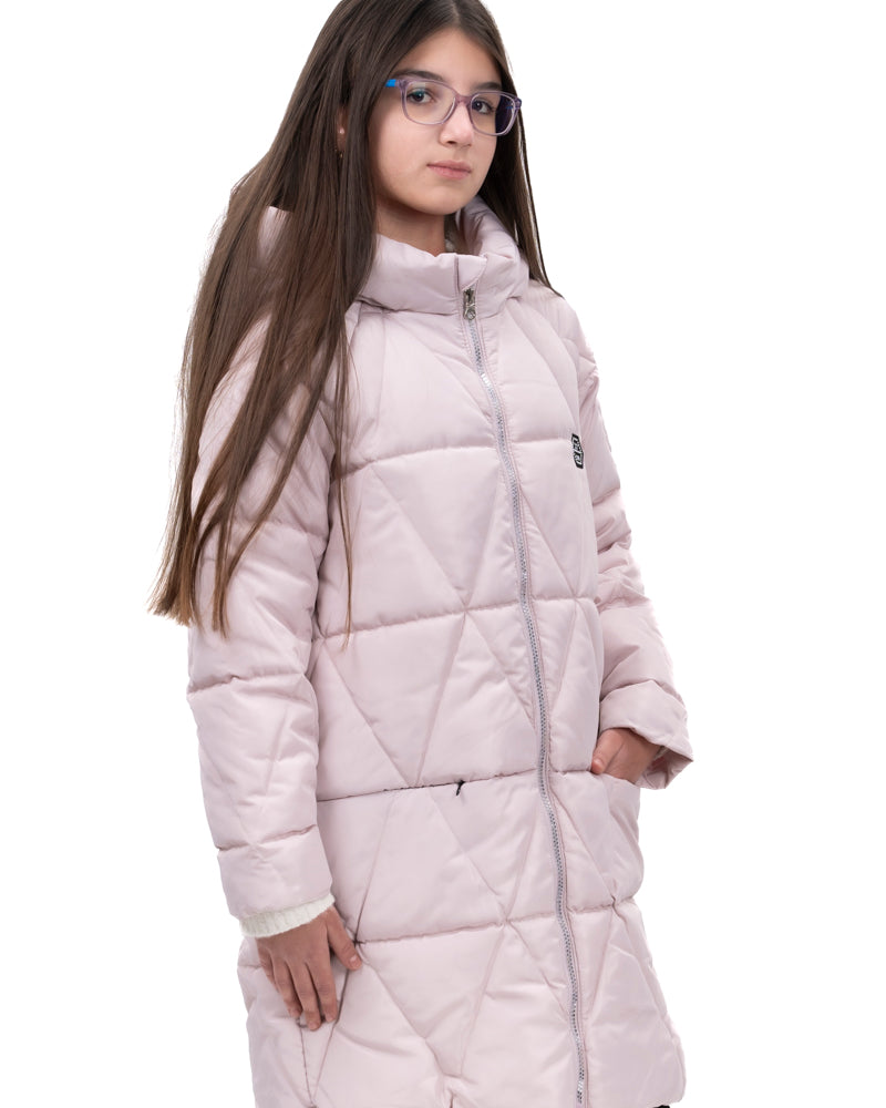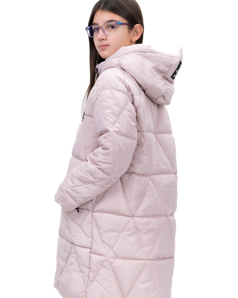Детско яке за момиче дълго зимно с качулка и свободна кройка в цвят пудра 51251