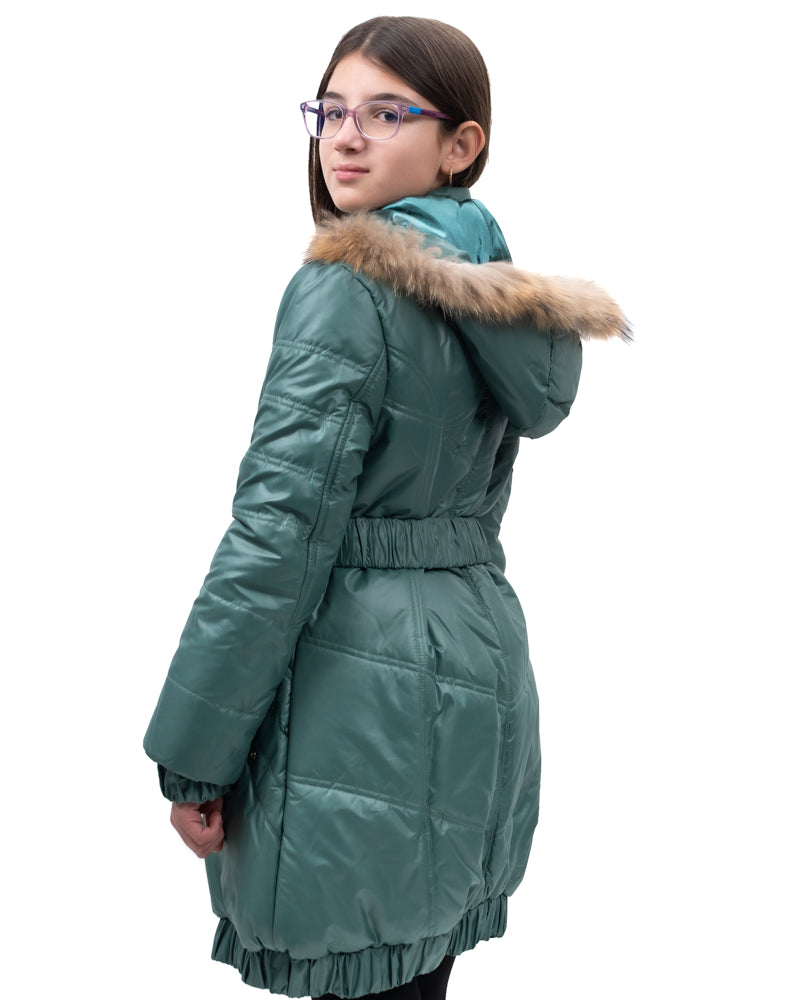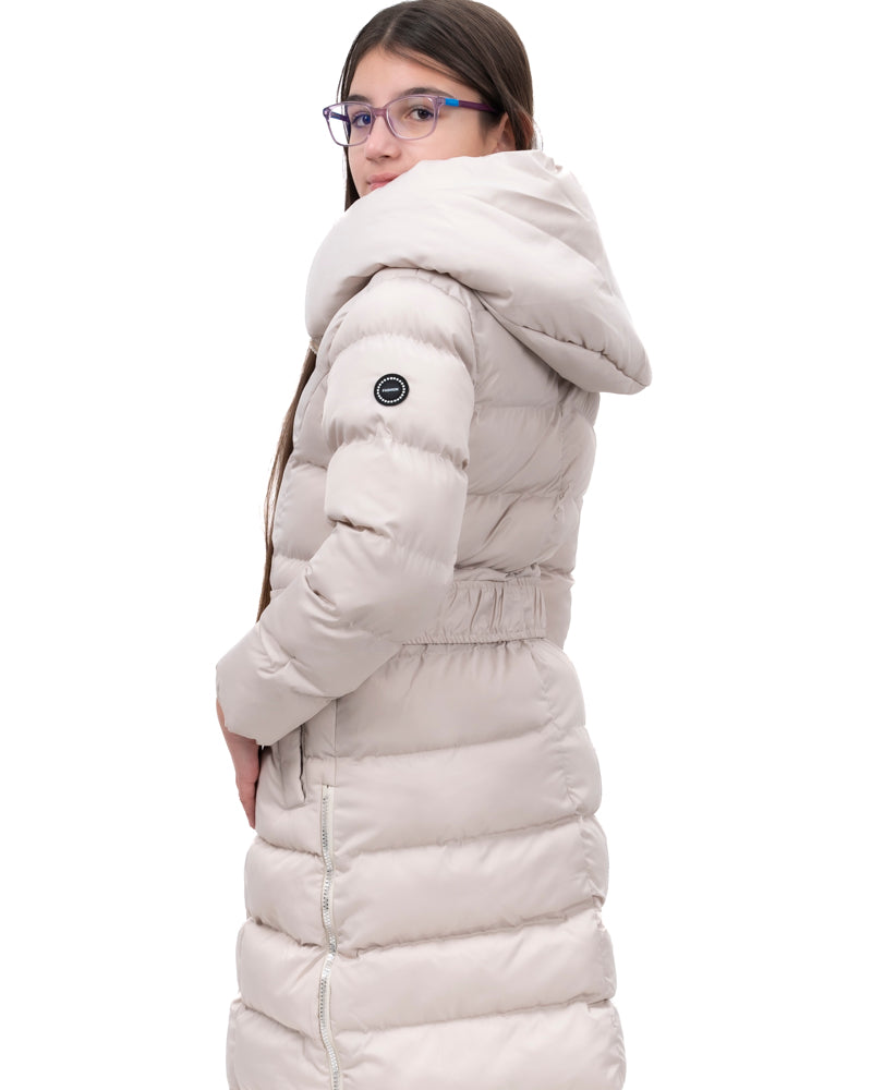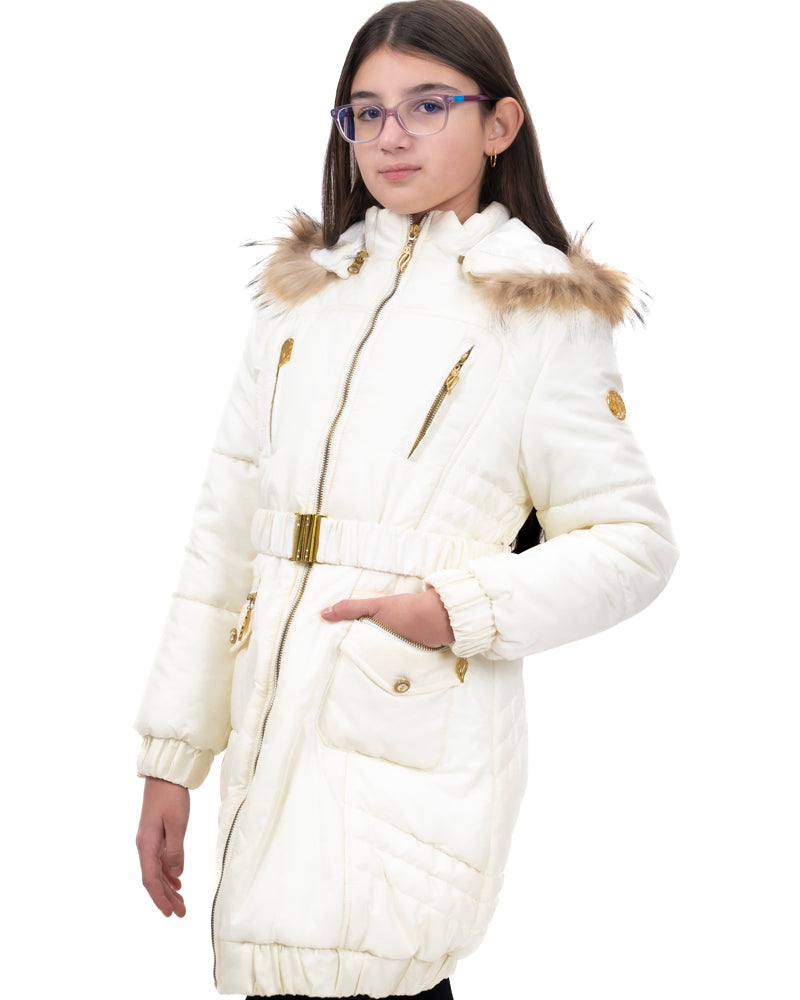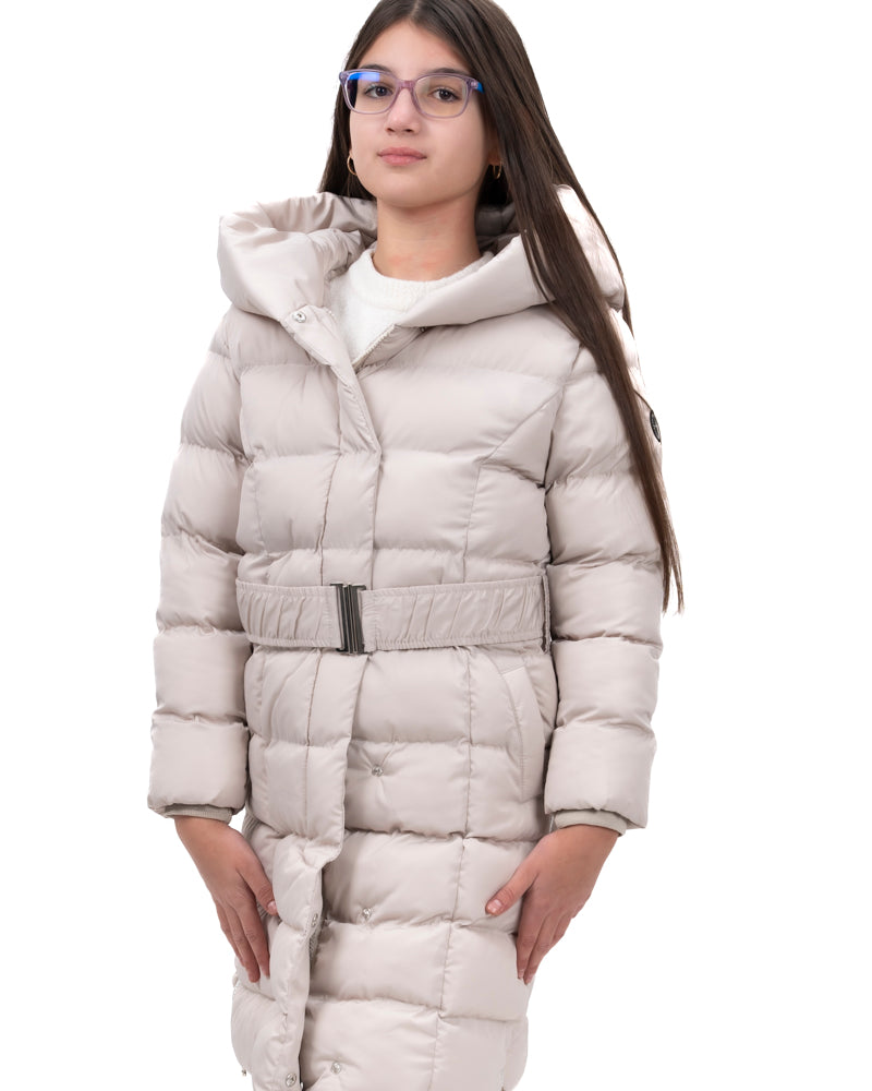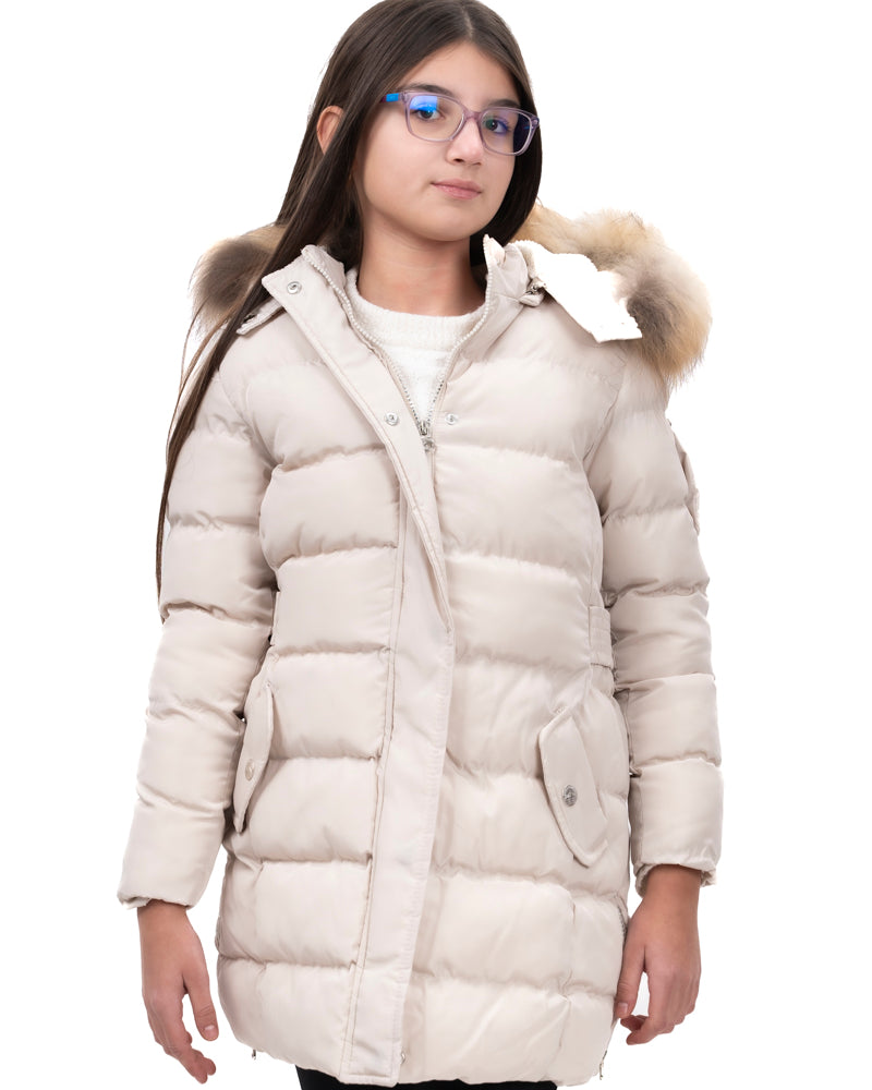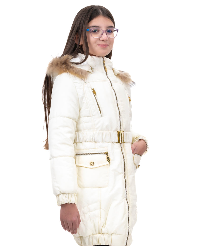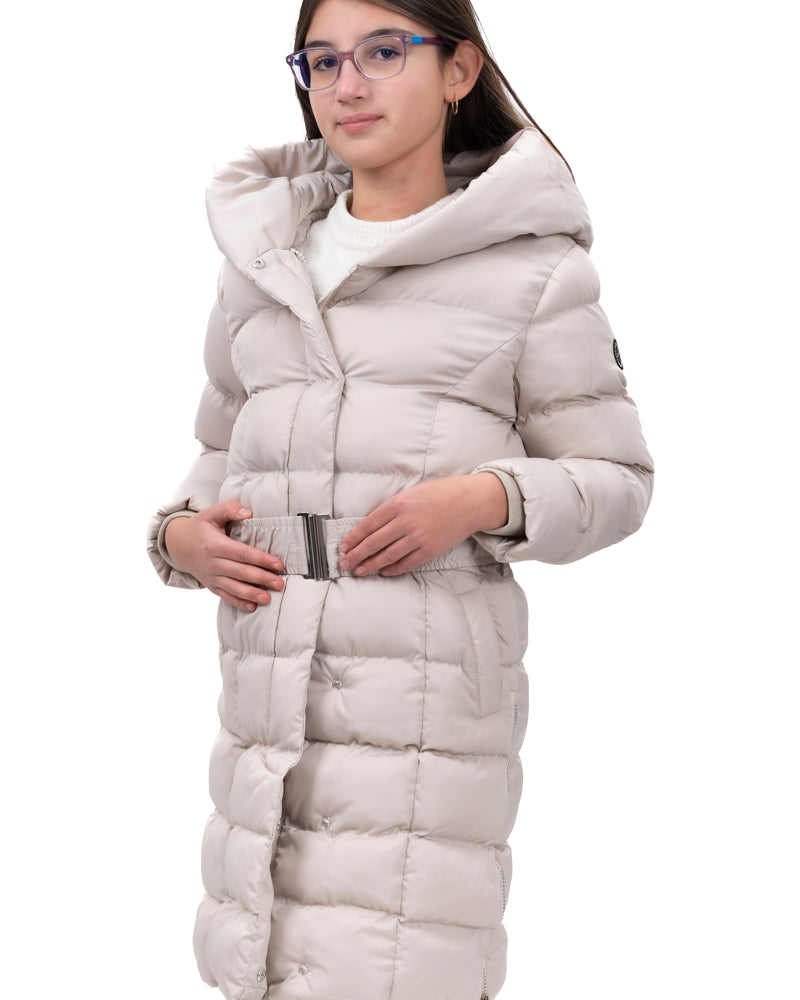 Детско яке за момиче дълго зимно с качулка и свободна кройка в цвят пудра 51251