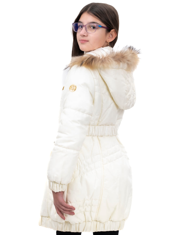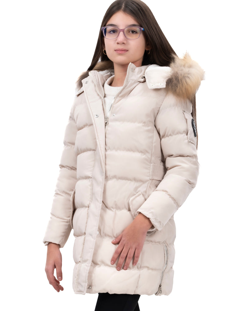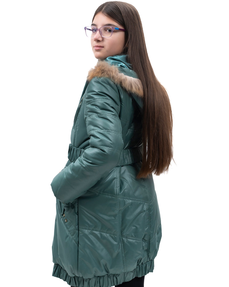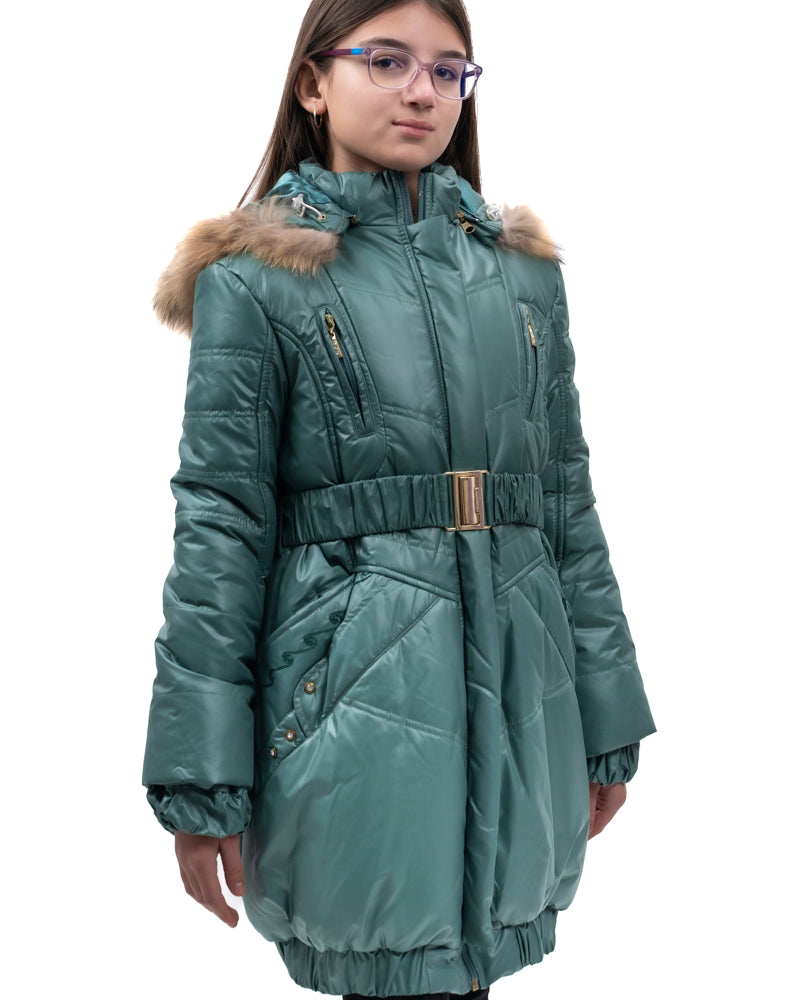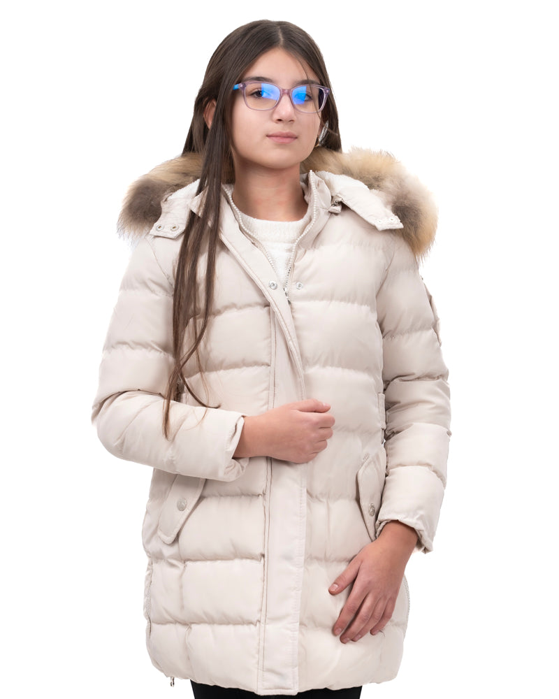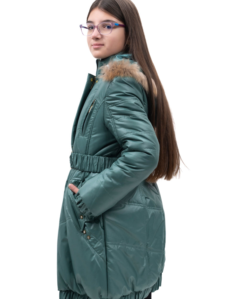 Детско яке за момиче дълго зимно с качулка и свободна кройка в цвят пудра 51251