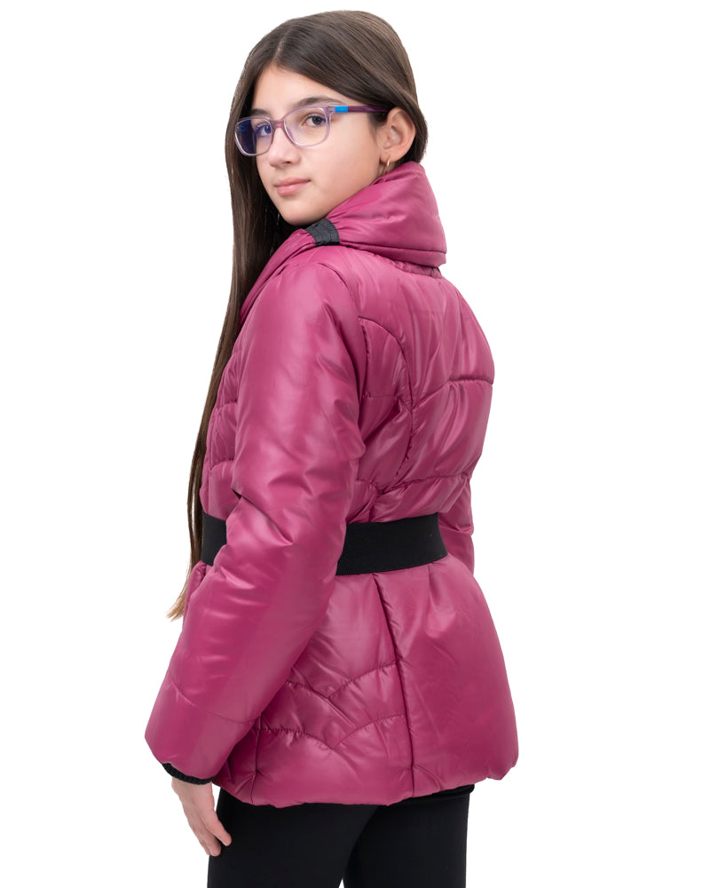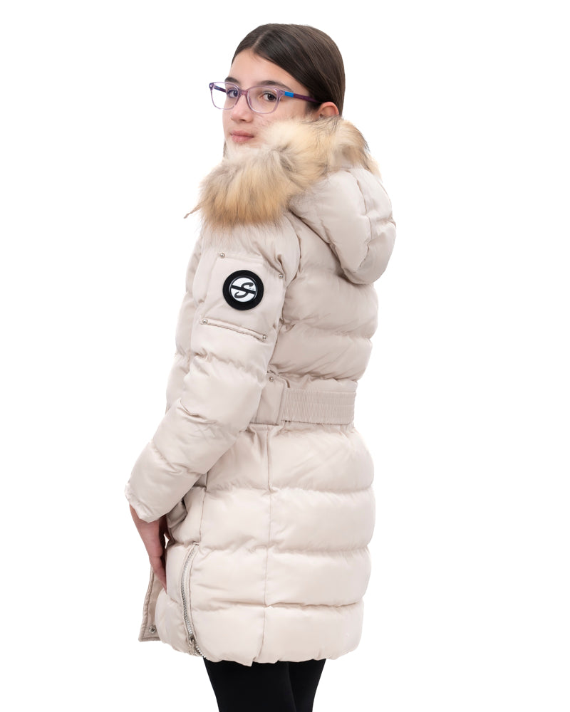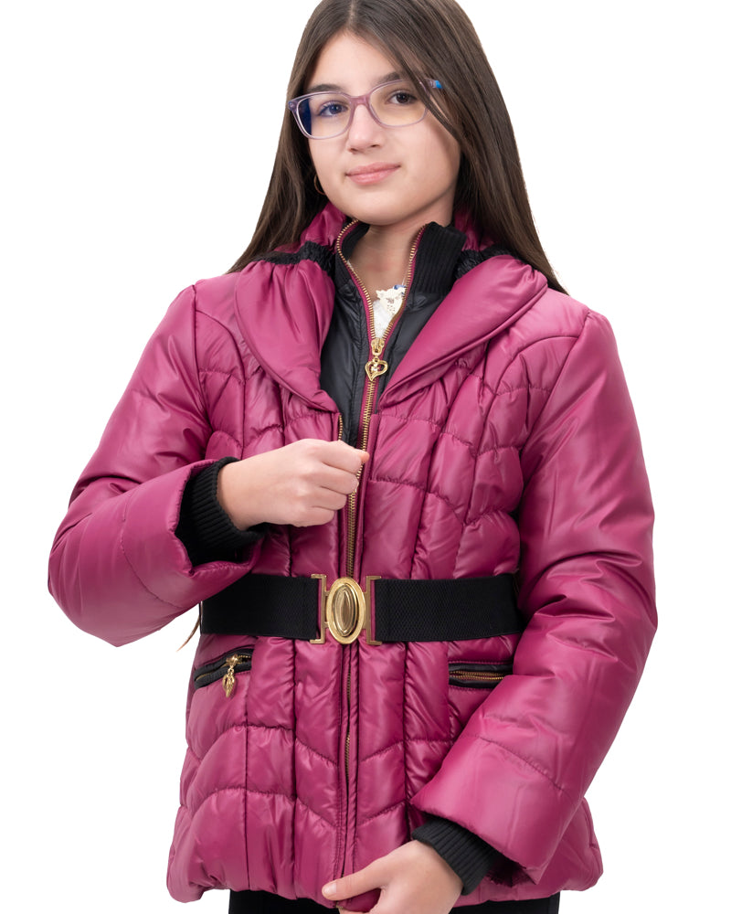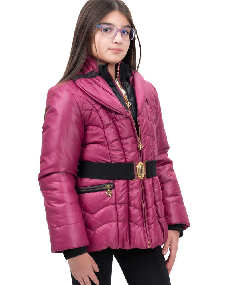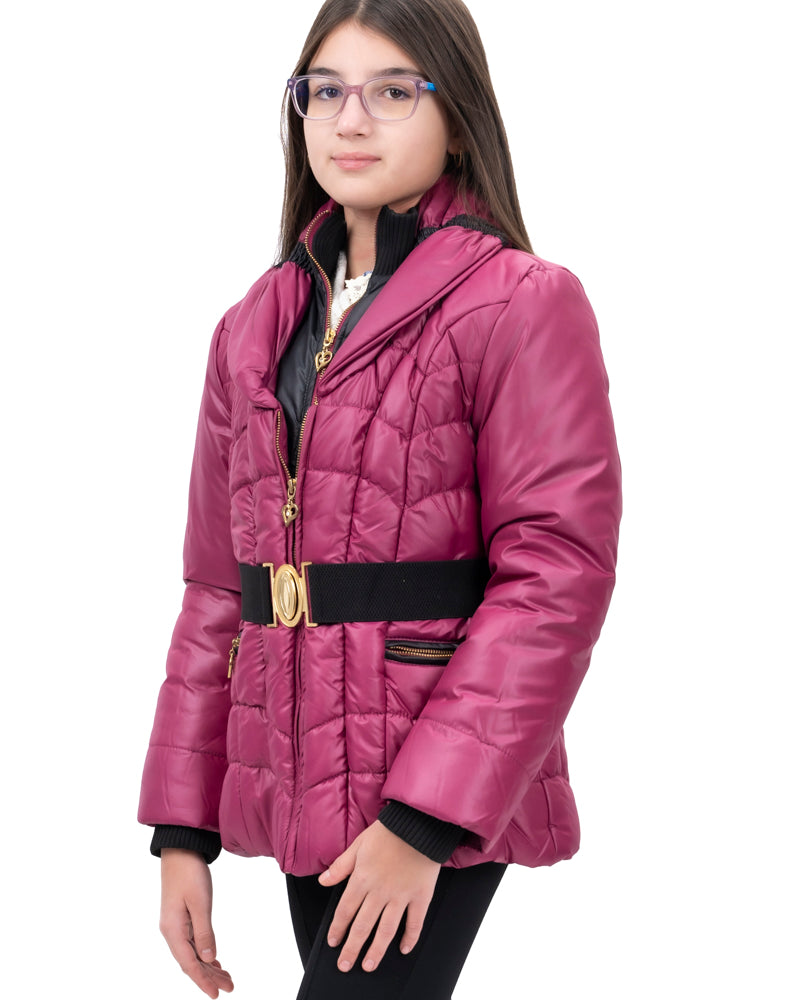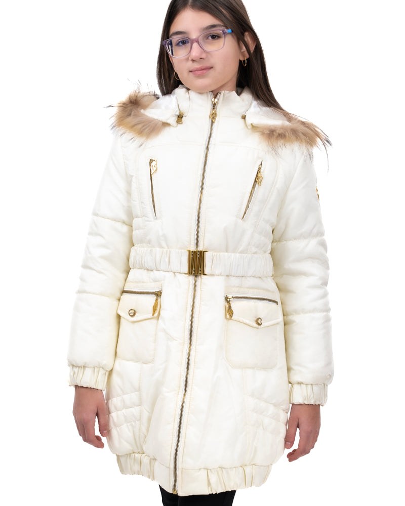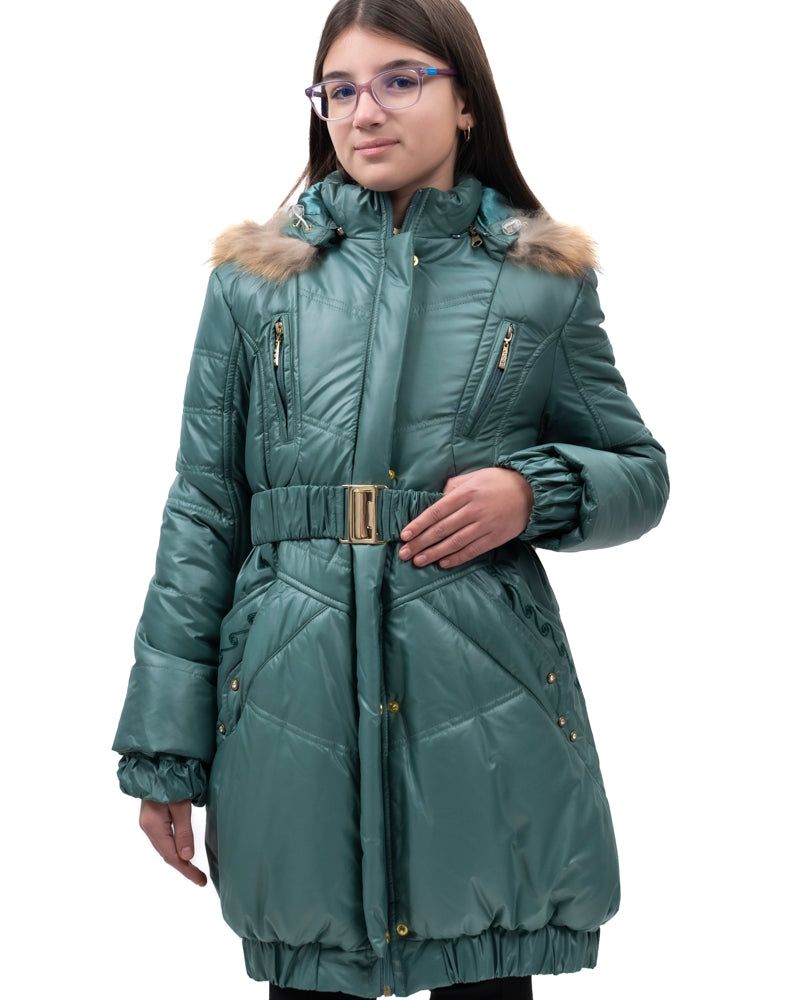 Детско яке за момиче дълго зимно с качулка и свободна кройка в цвят пудра 51251
