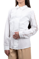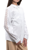 Детска риза за момиче с дантела на ръкава в бяло 5528
