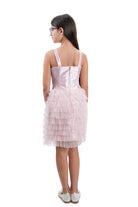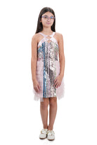 Детска рокля за момиче официална по тялото къса с цветни пайети и тюл в розово 006
