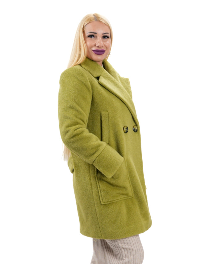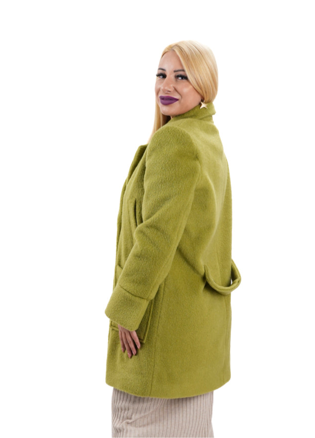 Дамско яке късо пухено с кожен джоб в зелено 5020