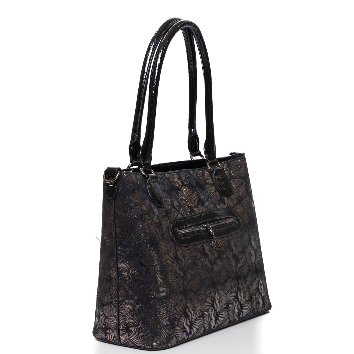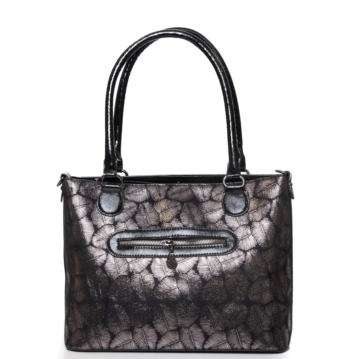 Дамска чанта средна големина със сребърен принт и големи дълги дръжки 1542