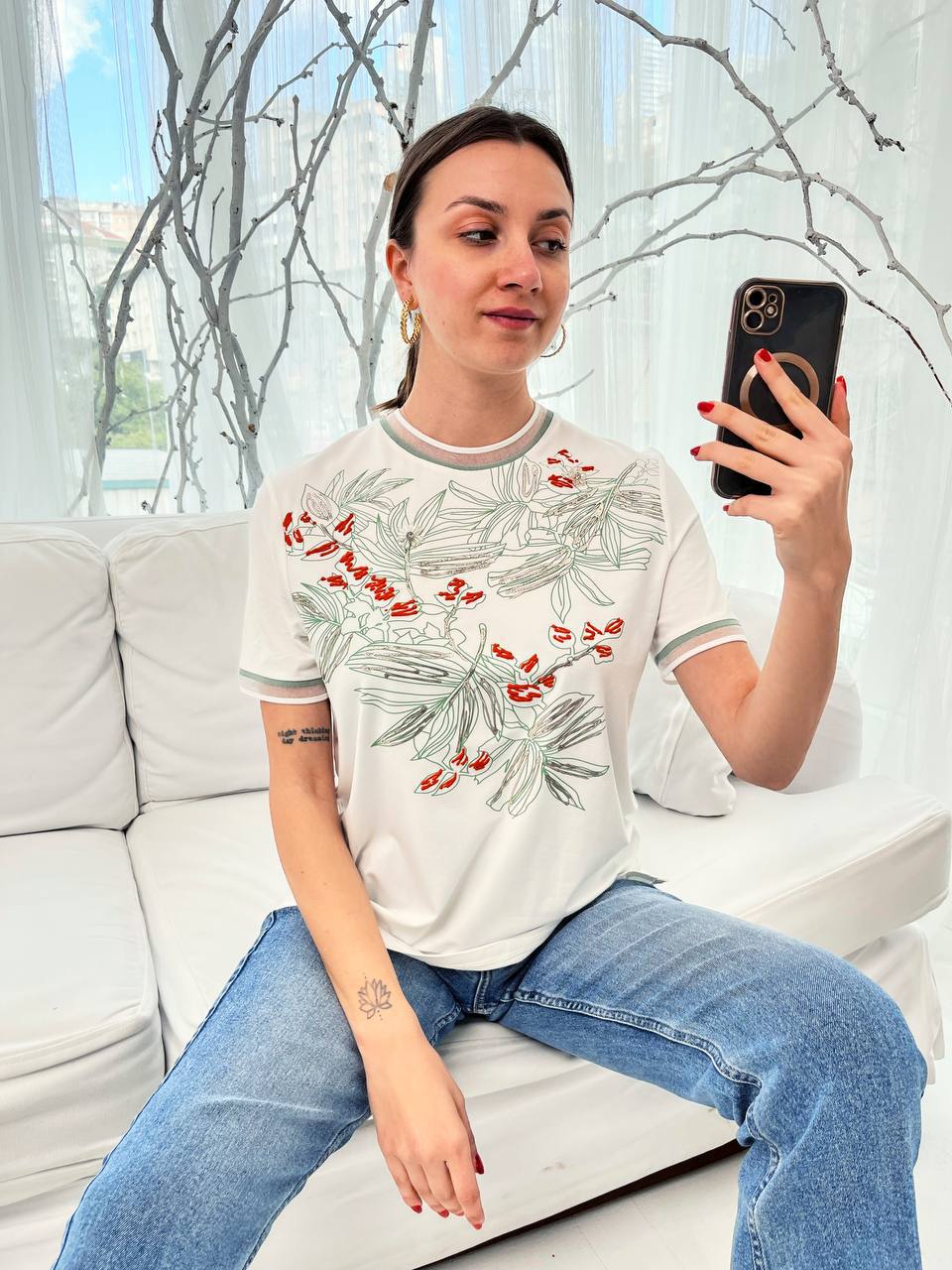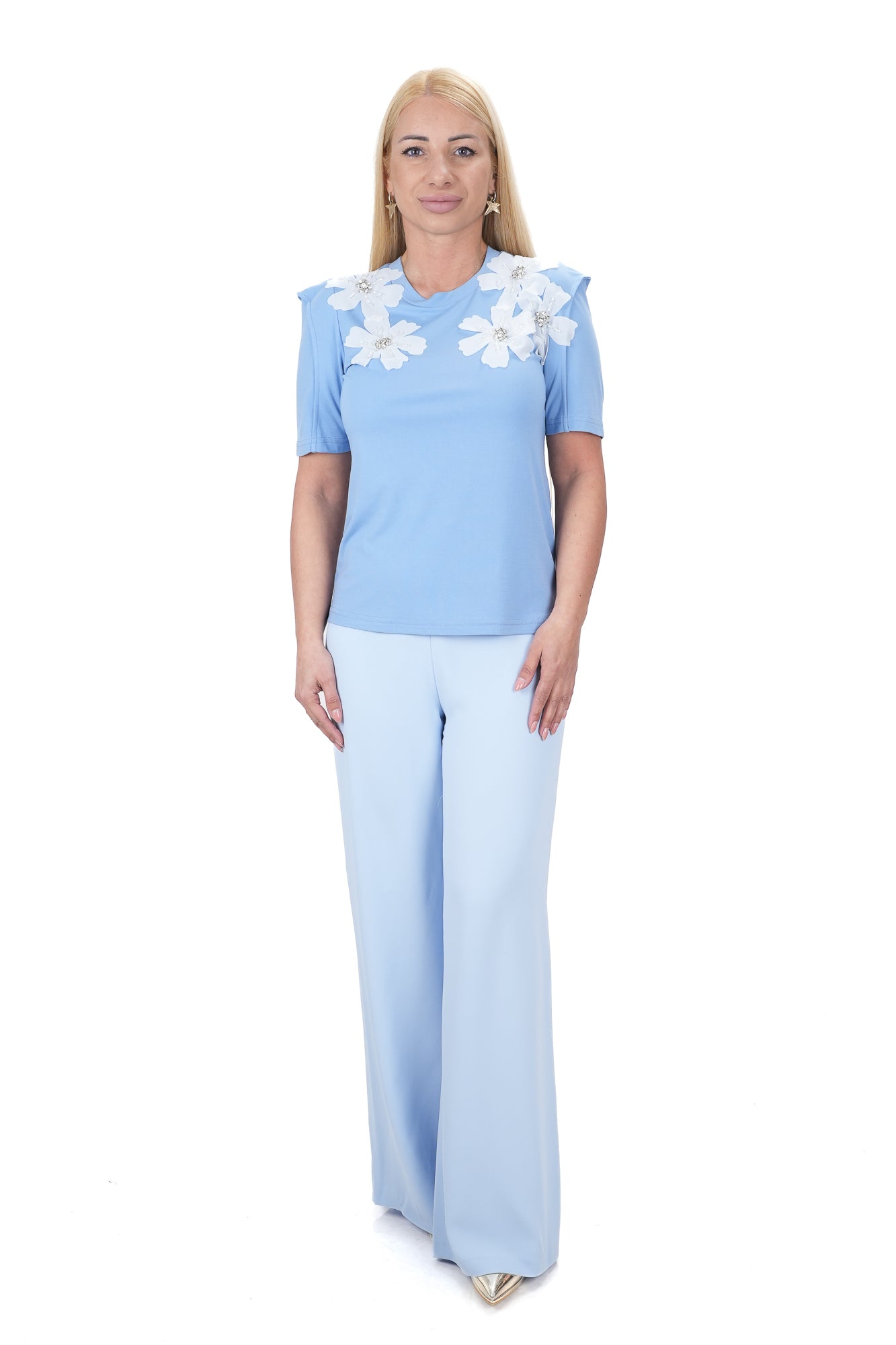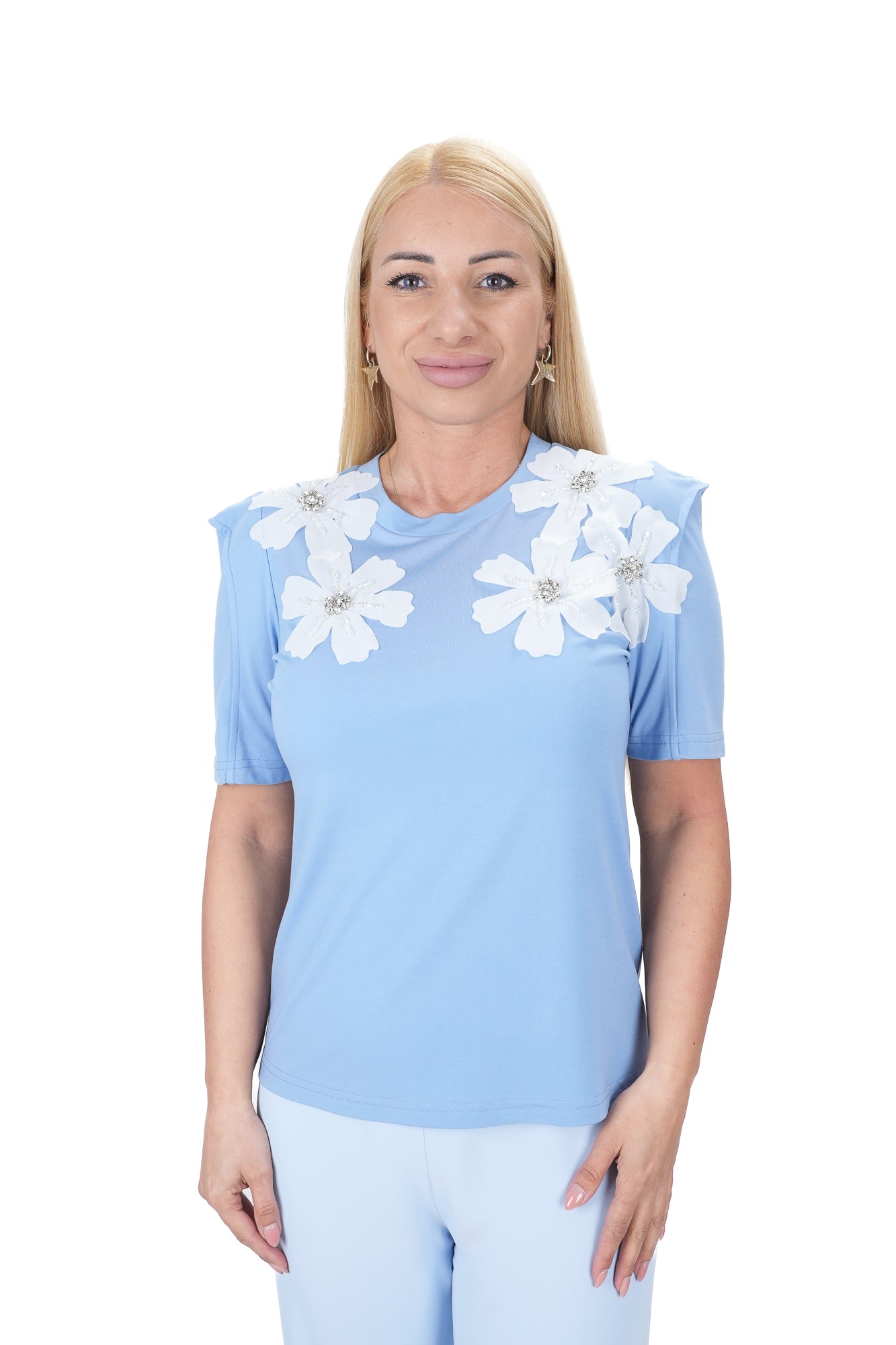 - Блузи с декорации и щампи Блузите с декорации като пайети, бродерии или камъни добавят интерес и стил на всяка визия. Те са перфектни за вечерни излизания или специални събития, когато искате да добавите малко блясък и уникалност на вашия външен вид. Блузите с щампи могат да бъдат цветни, с геометрични форми или дори с етнически мотиви, което прави тези блузи идеални за създаване на по-непринудени визии.