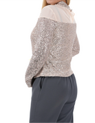 Дамска блуза от пайети в сребърно с тюл 3289