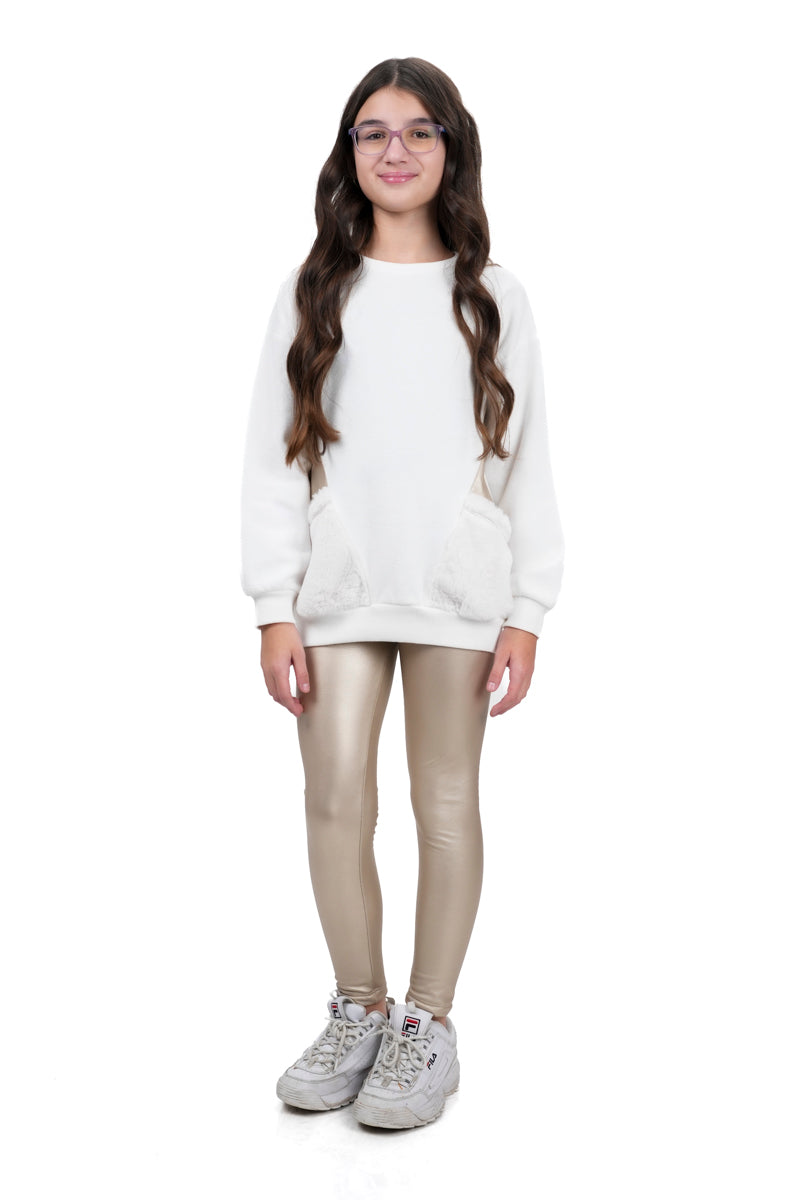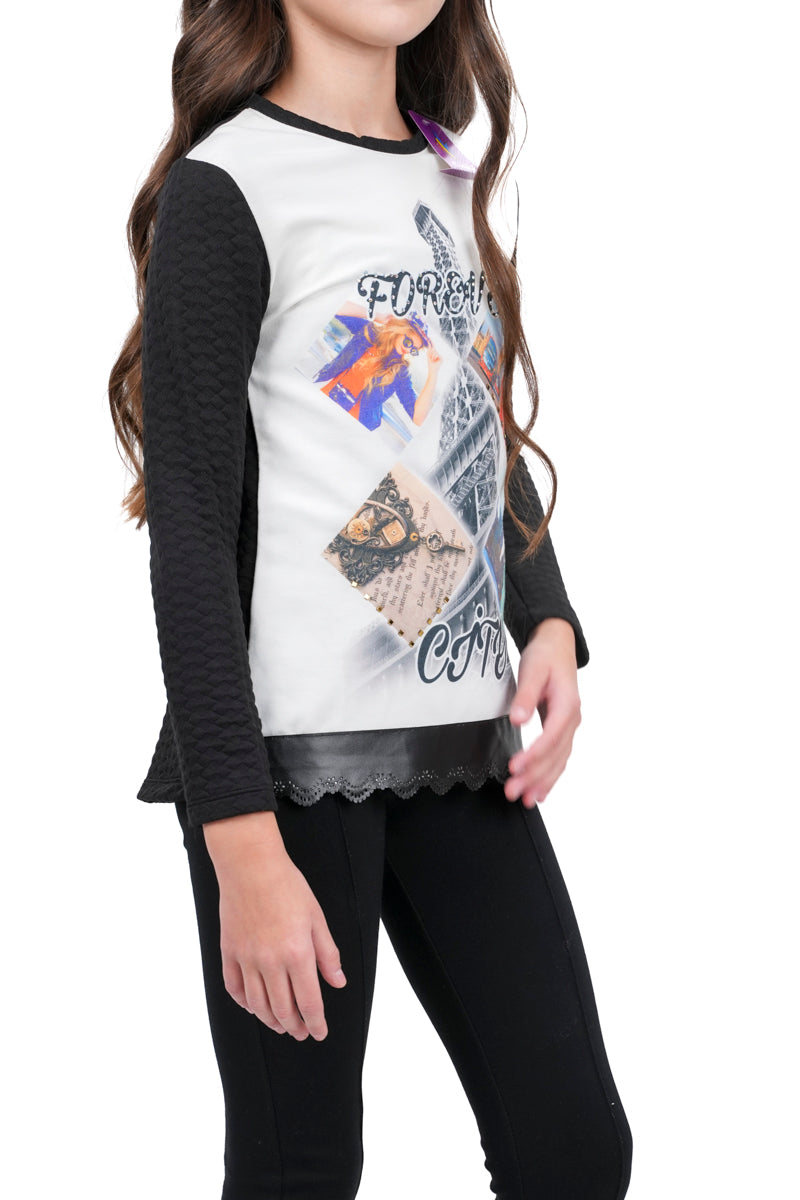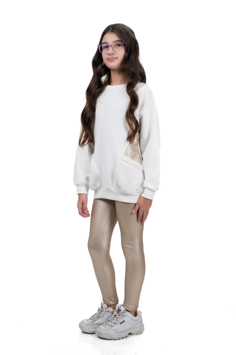 Блузите с щампи и мотиви за момичета са не само стилни, но и забавни. Те са подходящи за всеки ден и могат да бъдат с различни принтове – от животни и анимационни герои до геометрични фигури и забавни надписи. Тези блузи често се предлагат в ярки цветове и са идеални за малките, които обичат да изразяват своята индивидуалност чрез дрехите си. Блузите с щампи могат да се съчетават с всичко – от дънки до поли или шорти. - Пуловери с вълнена вътрешност