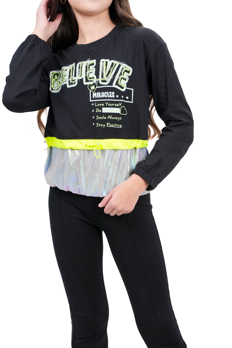 Спортните блузи и пуловери за момичета са перфектни за активно носене, особено за спорт и игри на открито. Те обикновено са изработени от еластични и дишащи материали като памук и синтетични влакна, които позволяват на кожата да диша и осигуряват свобода на движение. Спортните блузи и пуловери могат да бъдат с дълъг или къс ръкав, в зависимост от сезона. Тези модели обикновено имат модерни принтове и мотиви, които правят облеклото не само удобно, но и стилно. - Блузи с дълъг ръкав