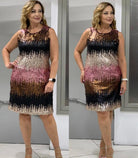 Дамска рокля по тялото от многоцветни пайети Големи номера 7668 батал
