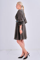 Дамска рокля разкроена с 3D цветя на ръкавите в тъмно зелено 11519