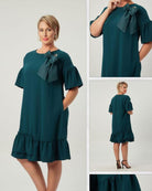 Дамска рокля свободна кройка с панделка в черно 6562 Големи номера